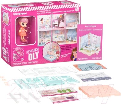 Комплект аксессуаров для кукольного домика Bondibon Кукольный уголок и куколка Oly. Гостиная / ВВ4490