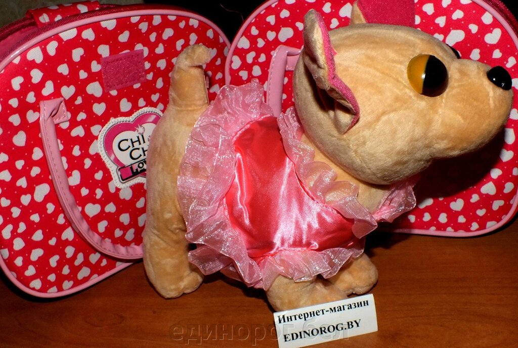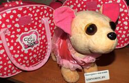 Собачка Чи Чи Лав девочка в блестящем, пышном платьице и сумочкой , лает.