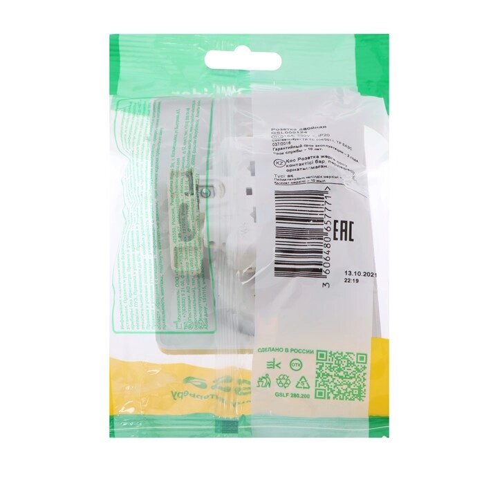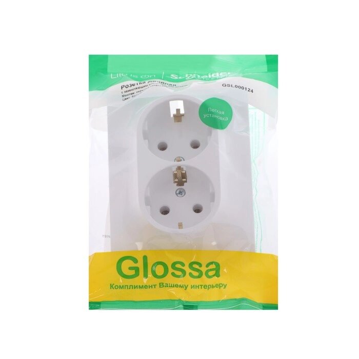 Розетка "Glossa" SchE GSL000124, 16 А, двойная, с з/к, цвет белый
