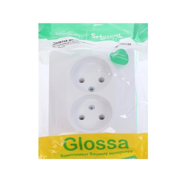 Розетка "Glossa" SchE GSL000120, 16 А, двойная, без з/к, цвет белый