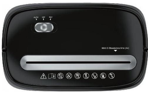 Приймає документи, скріплені скобами або скріпками. Може знищувати кредитні та дисконтні картки.