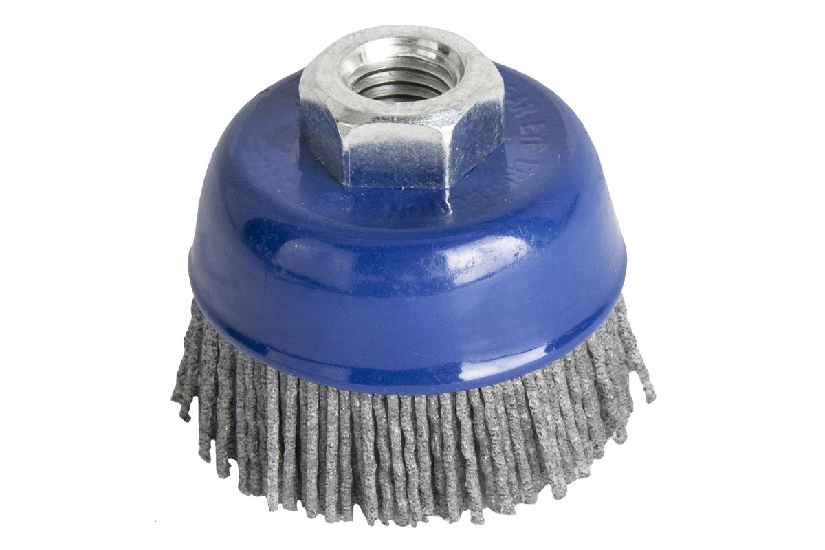 Кордщетка предназначена для установки на малые угловые шлифмашины. Резьбовая посадка на шпиндель М14. Нейлоновый абразивный материал идеально подходит для удаления лака, матирования, структурирования древесины, обработки металлов. Хорошо подходит для тонких листов не допуская их повреждения. Частота оборотов до 10000 об/мин