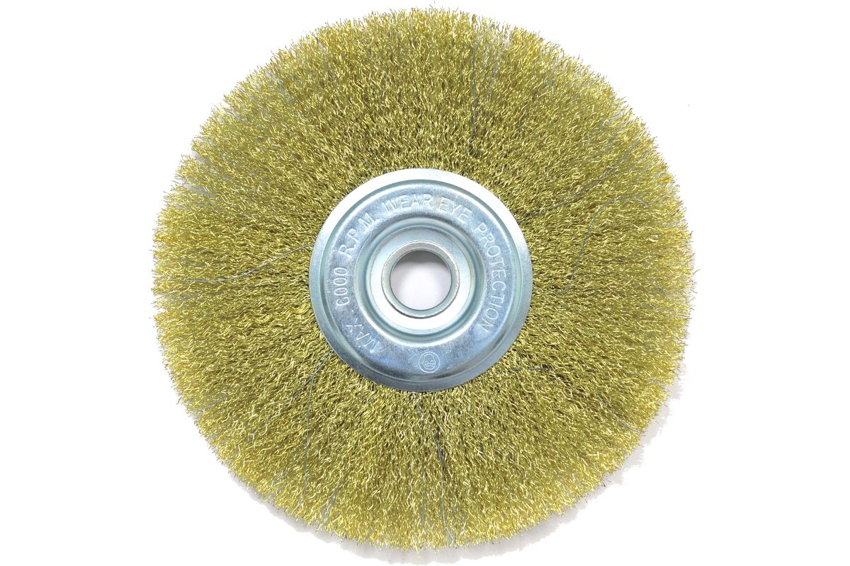 Щетка д\УШМ, 200 мм, посадка 22,2 мм, плоская, латунированная витая проволока 0,3 мм