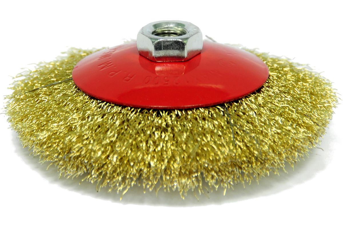 Кордщетка ELITECH тарелка 125мм для УШМ гофрированная латунированная сталь (1820.075300)