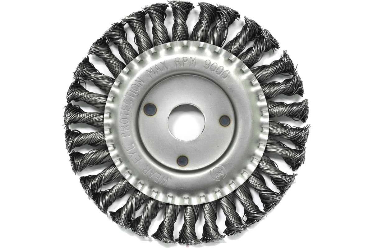 Щетка д\УШМ 150 мм, посадка 22,2 мм, плоская, крученая проволока 0,5 мм Щетка д\УШМ 150 мм, посадка 22,2 мм, плоская, крученая проволока 0,5 мм