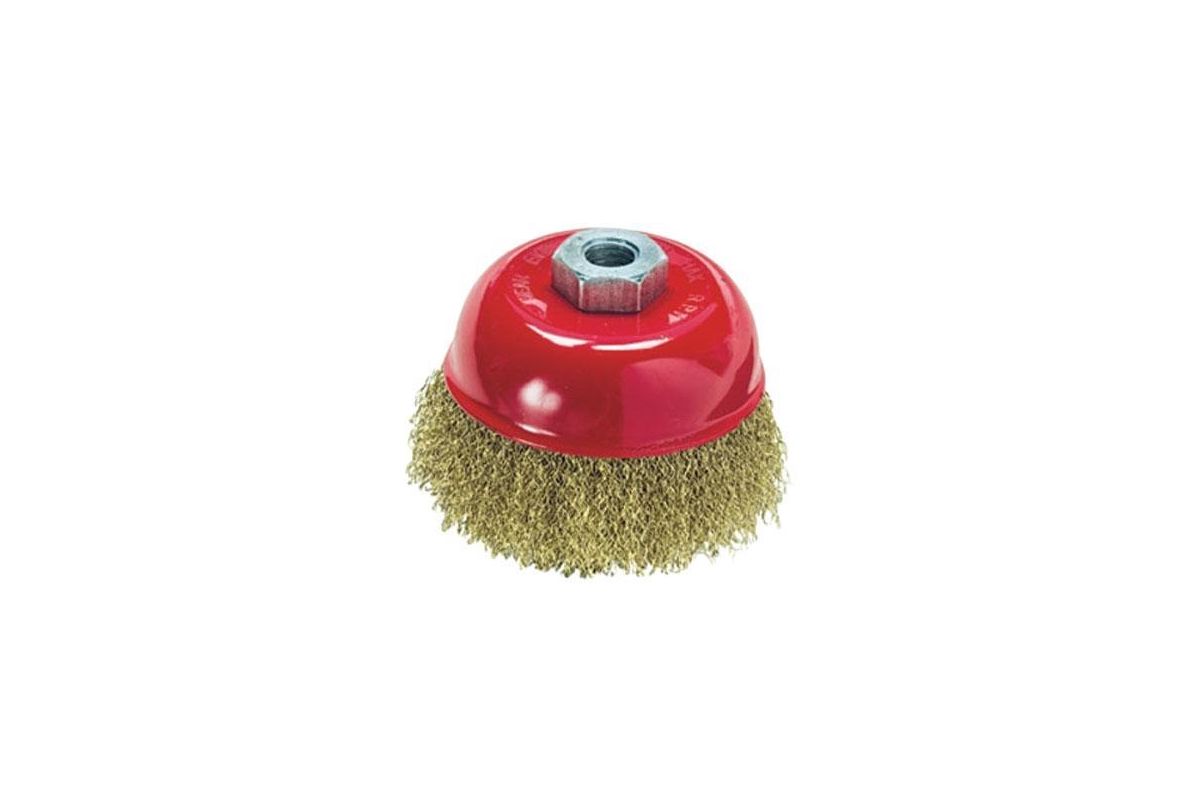 Щетка изготовлена из стальной проволоки. Латунное покрытие. Применяется для очистки металлических поверхностей от ржавчины и грязи в щадящем режиме. Тип посадки – М14.