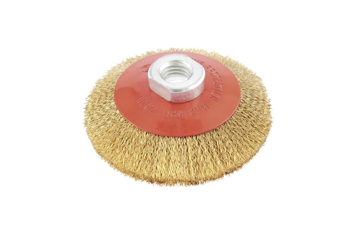 Кордщетка MATRIX тарелка 125мм для УШМ гофрированная латунированная сталь (74616)