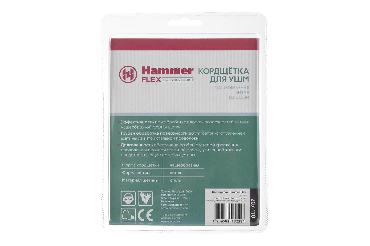 Кордщетка Hammer Flex 207-110 75мм M14 чашеобразная витая жесткая, усиленная кольцом, для УШМ