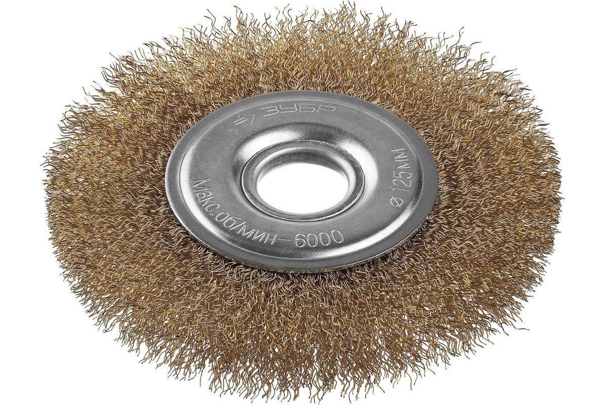 Кордщетка ЗУБР плоская 125мм для УШМ гофрированная латунированная сталь (35187-125_z01)