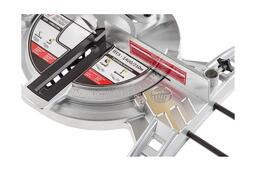 Диск закрыт пластиковым кожухом. Он открывается только при опускании режущей части к заготовке, что предотвращает травмы.
