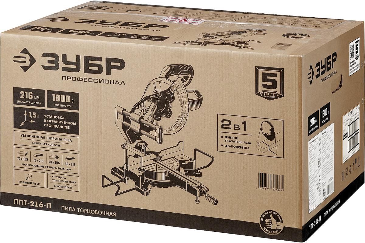 Пила торцовочная ЗУБР Профессионал ППТ-216-П с протяжкой, d 216 х 30 мм, 1800 Вт