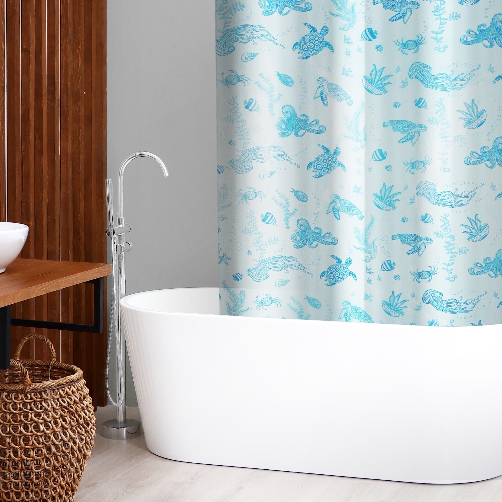 Штора для ванной «Подводный мир», 180×180 см, цвет синий