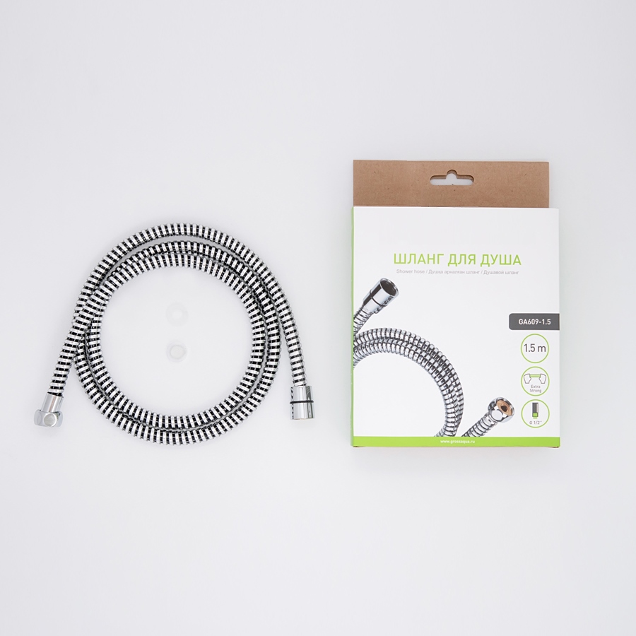 Если у вас повышенное или нестабильное давление в системе подачи воды, то шланг для душа GA609-1.5 отлично подойдет. Внутренний шланг из пищевого EPDM каучука, усилен продольными капроновыми нитями. Латунные втулки и гайки придают прочность на разрыв. Оплетка из высокопрочной ПВХ ленты не царапает акриловую ванну и корпус смесителя