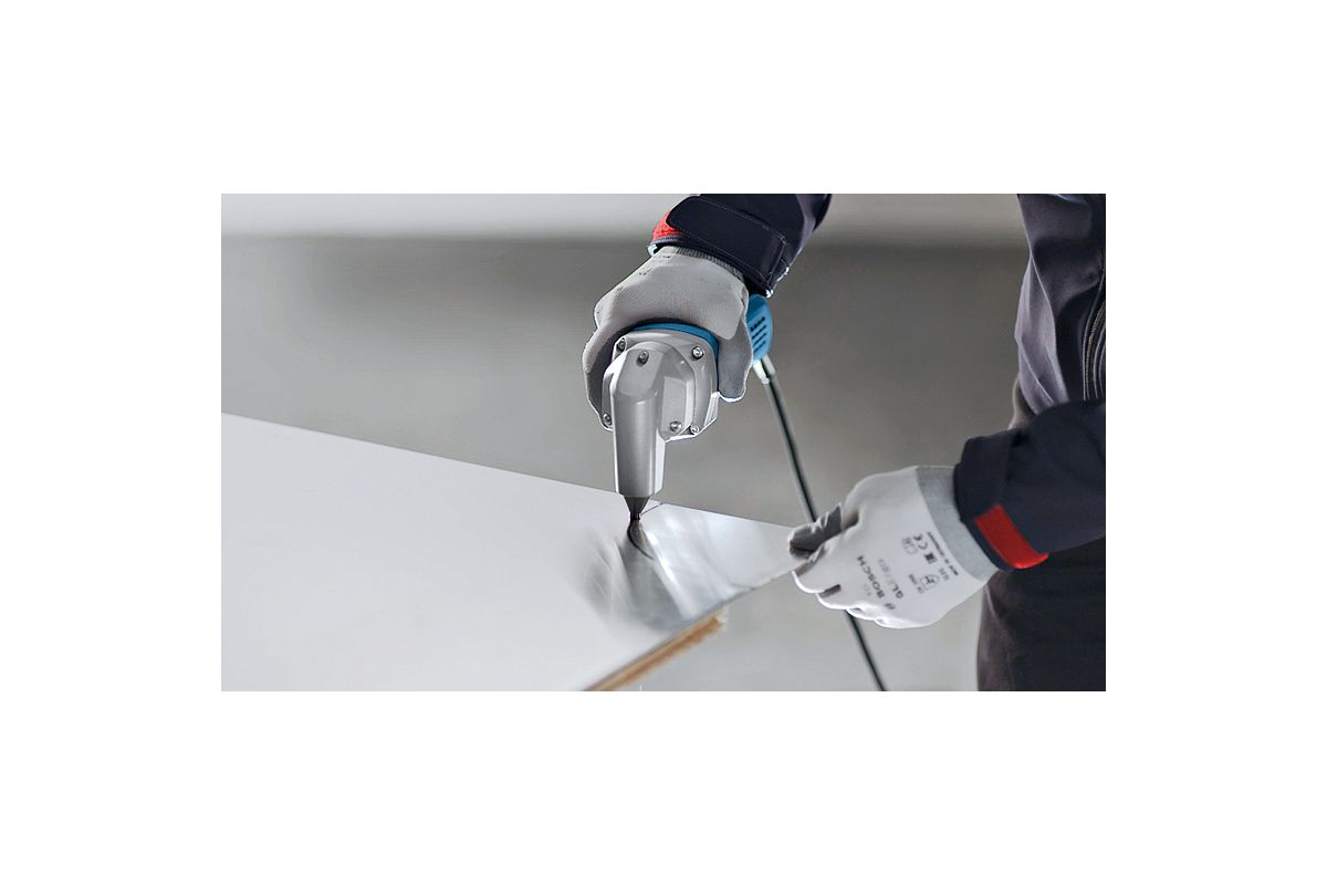 BOSCH GNA 75-16 – профессиональные высечные ножницы для резки металлических листов. Подходят для прямых и криволинейных резов. Справляются с гофрированными заготовками, трубами, профилем и другими металлическими деталями толщиной до 1,6 мм.