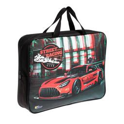 Папка с ручками, текстильная, А4, 350 х 265 х 80 мм, «Оникс», ПМД 4-20, «Racing club» (ручка-тесьма)