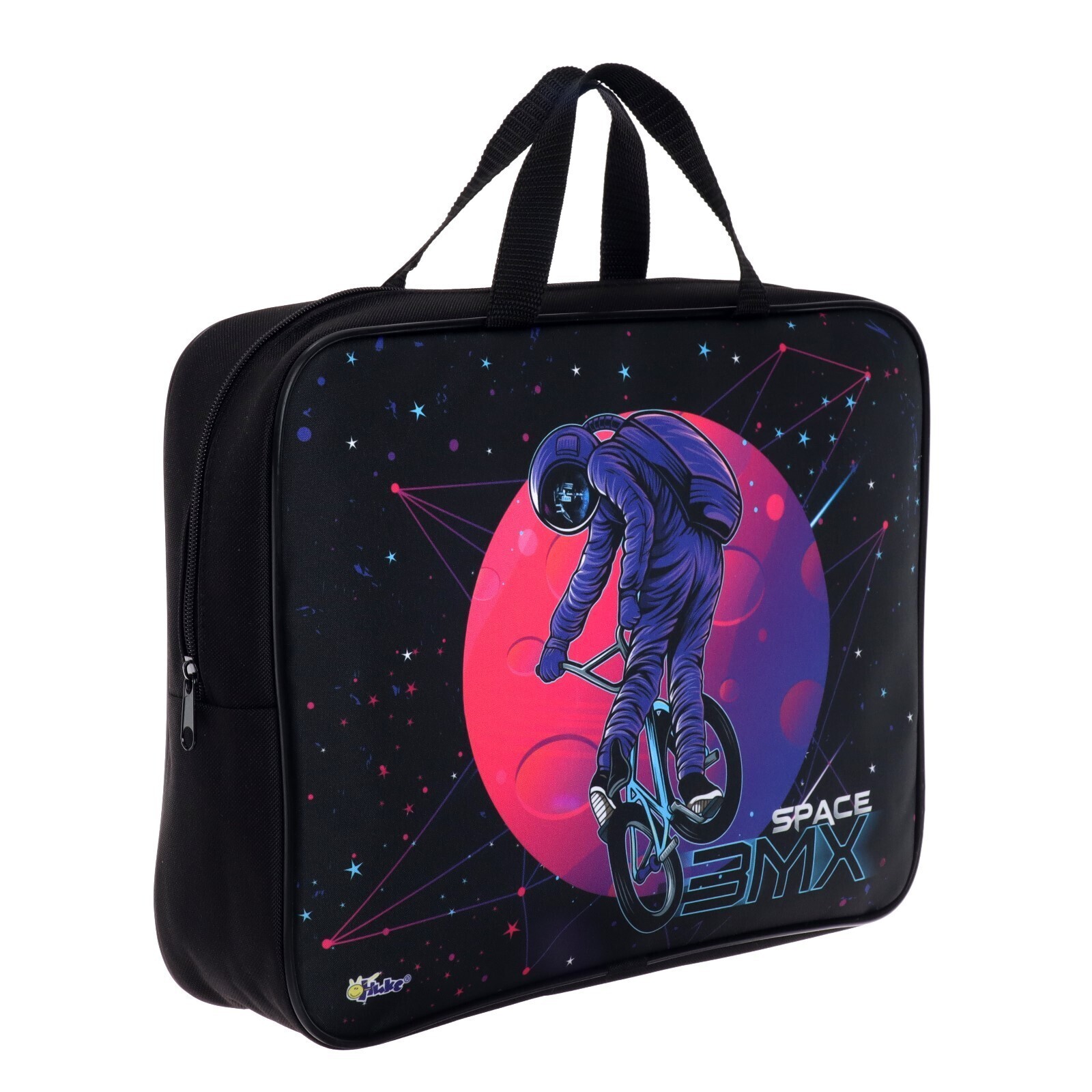 Папка с ручками текстильная А4, 350 х 265 х 45 мм, "Оникс", ПМД 4-20, "Космонавт BMX", ручка-тесьма