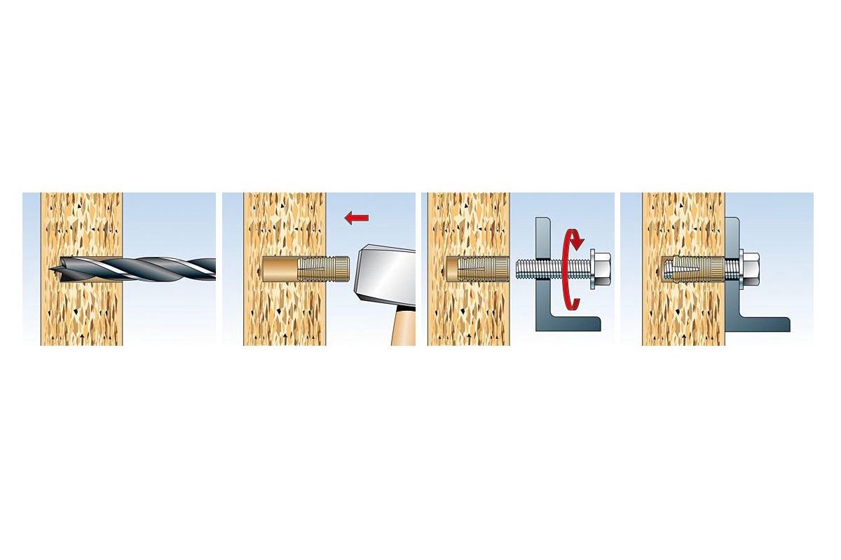 - Для короткого латунного анкера Fischer PA 4 требуется очень небольшая глубина анкеровки, что делает его пригодным для тонких древесностружечных плит;