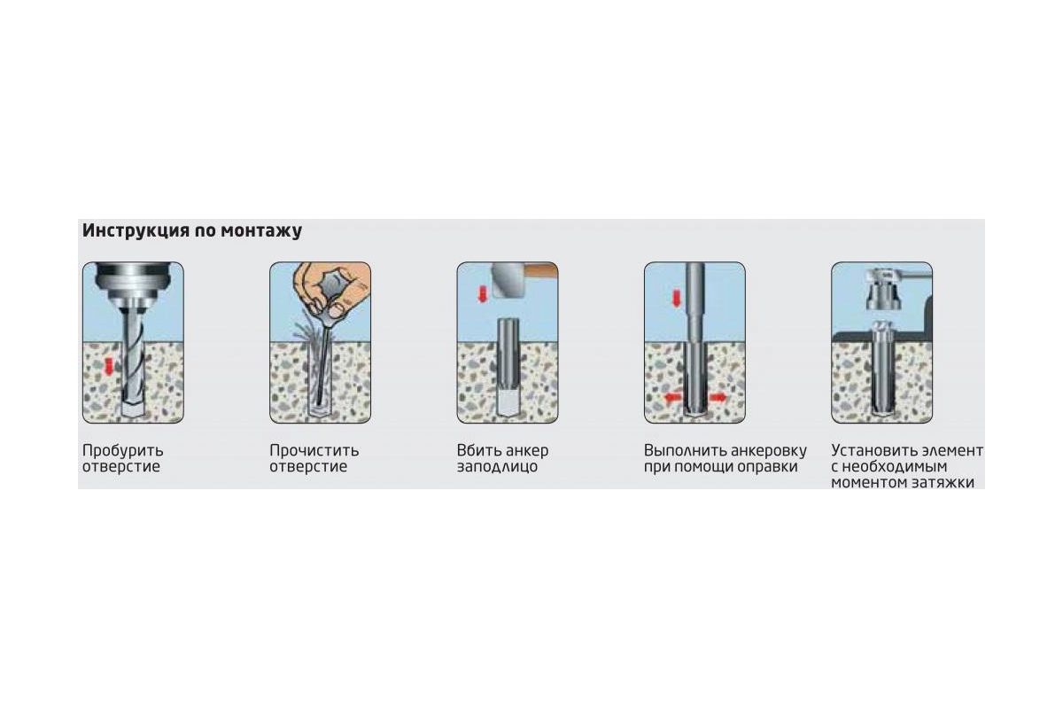 - Установка анкера производится заподлицо в просверленное и очищенное отверстие легкими ударами молотка;
