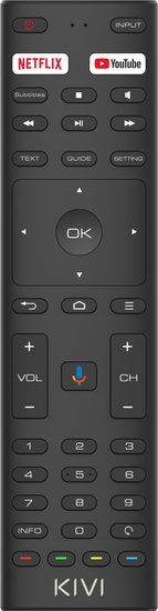 • Пульт в комплекте KIVI RC20 – черный с голосовым управлением и кнопками Netflix, YouTube