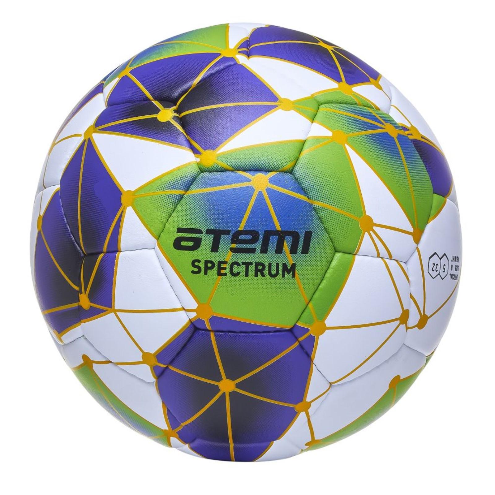 Мяч футбольный Atemi SPECTRUM, микрофибра, бел/син/зел, размер 5, р/ш, окруж 68-70