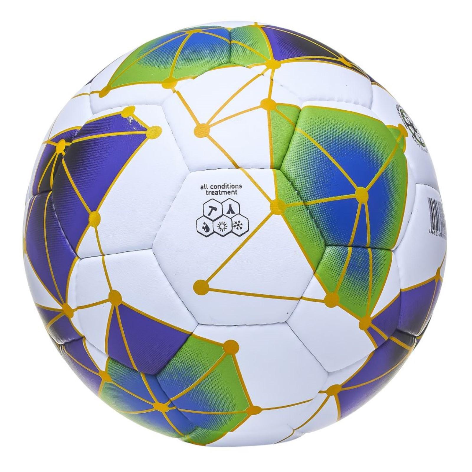 Соответствует международным стандартам. Предназначен для активных тренировок и профессиональных матчей. Футбольный мяч с уникальным дизайном, отлично подойдёт для игры на мягких поверхностях. Он сделан из водоотталкивающего материала, что позволяет наслаждаться игрой в любую погоду. Покрышка из ламинированной микрофибры вместе с двойной ручной сшивкой панелей обепечивает дополнительную прочность.