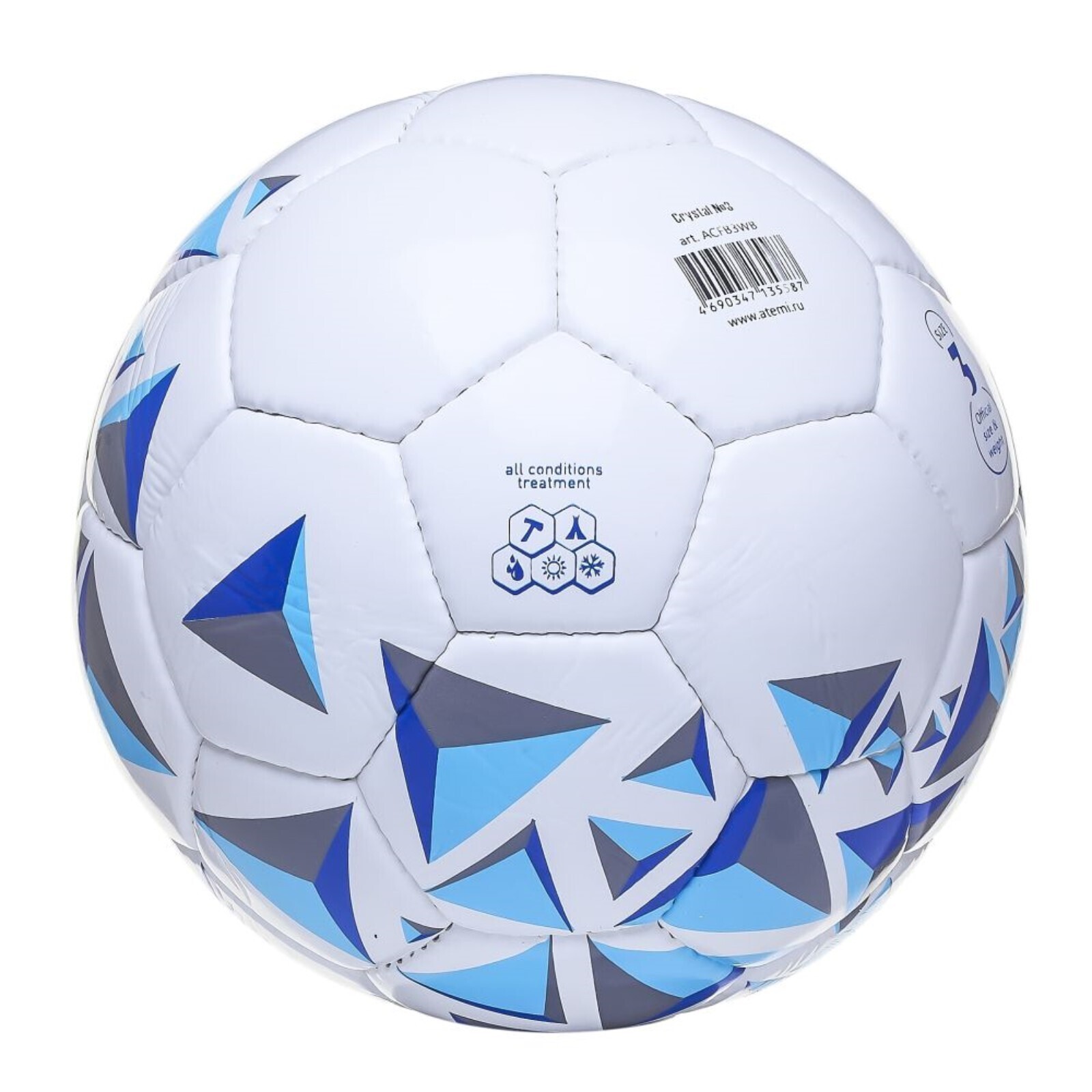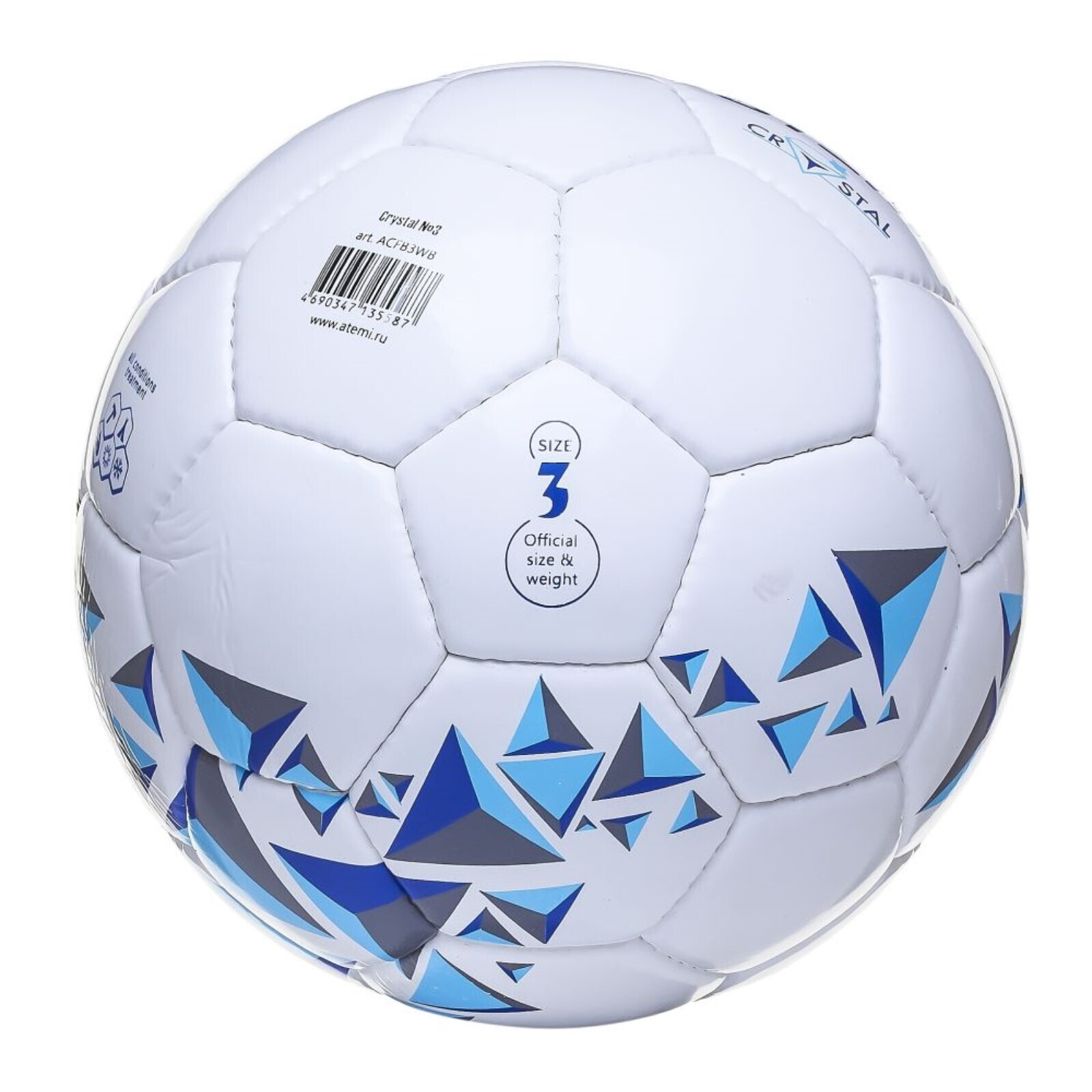 Мяч футбольный ATEMI CRYSTAL, PVC, бел/темно син, размер 3, р/ш, окруж 60-61