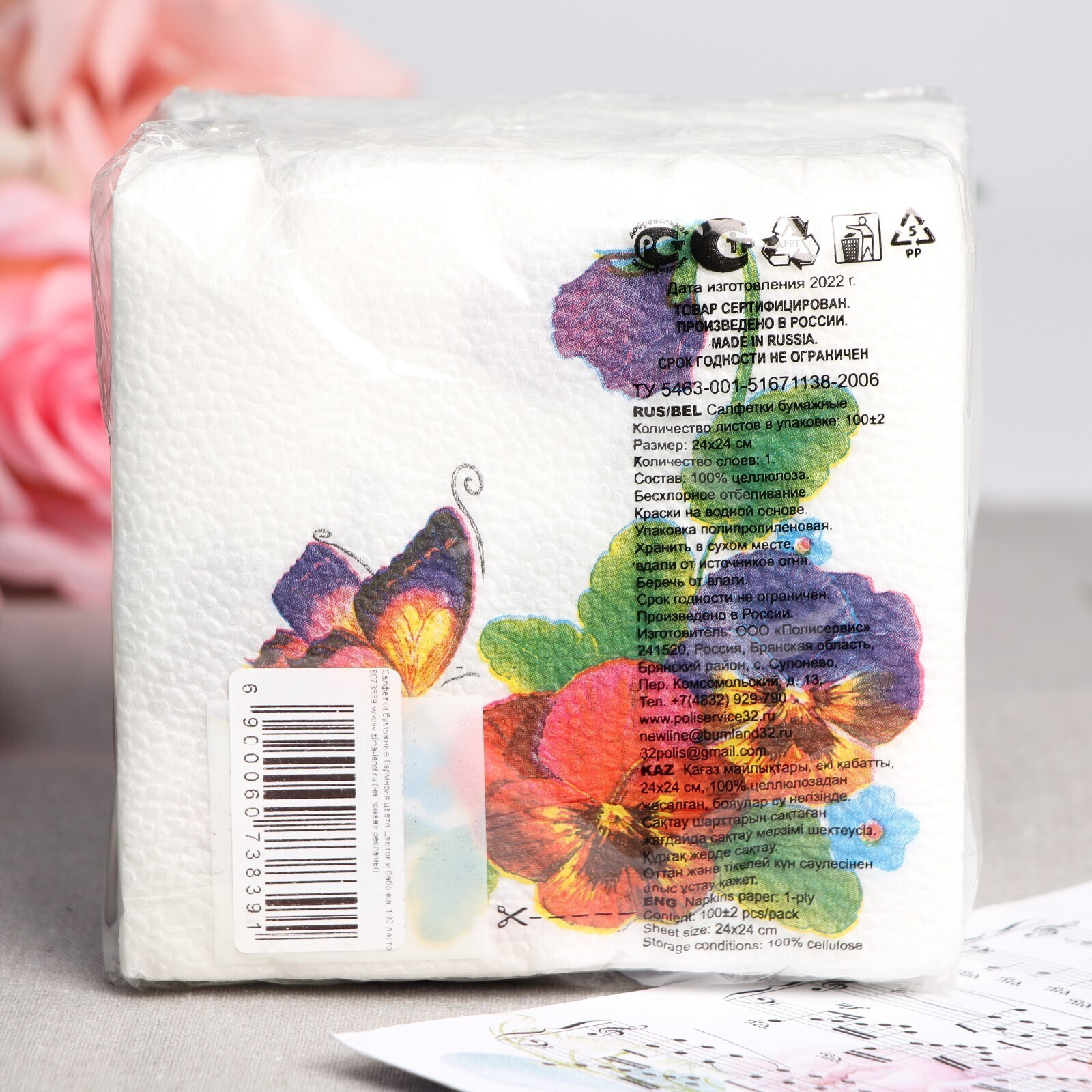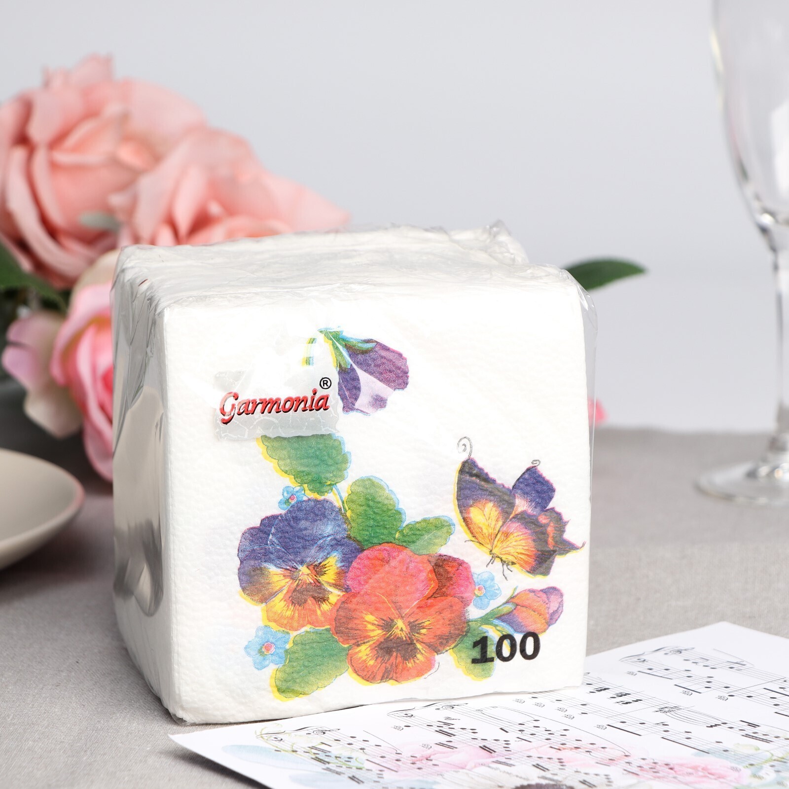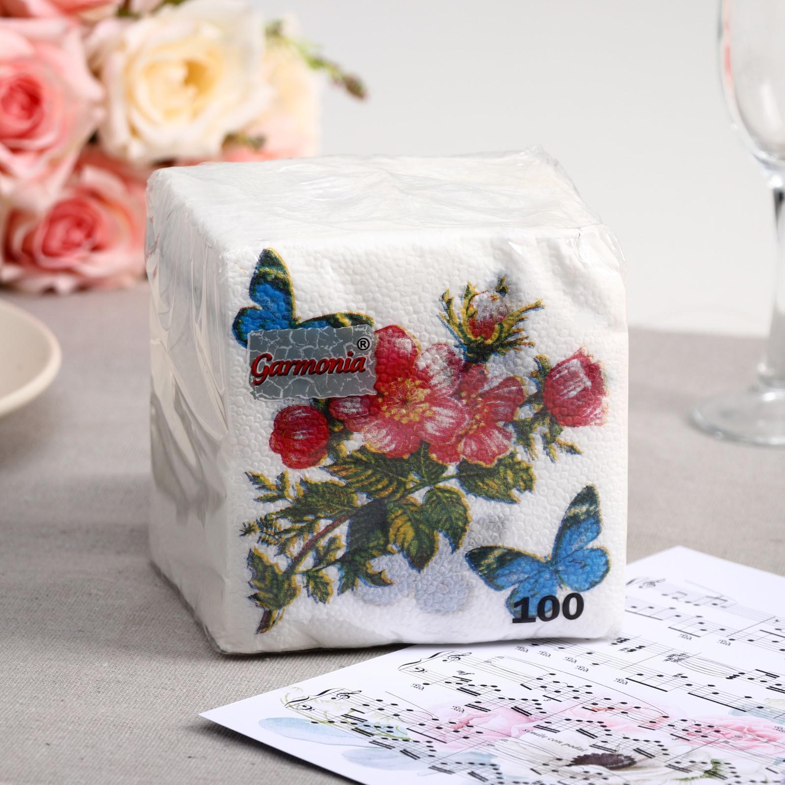 Салфетки бумажные «Гармония цвета. Цветок и бабочка», 100 шт.