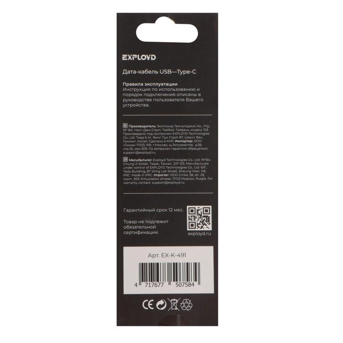 Кабель Exployd Classic EX-K-491, Type-C - USB, 2 м, белый