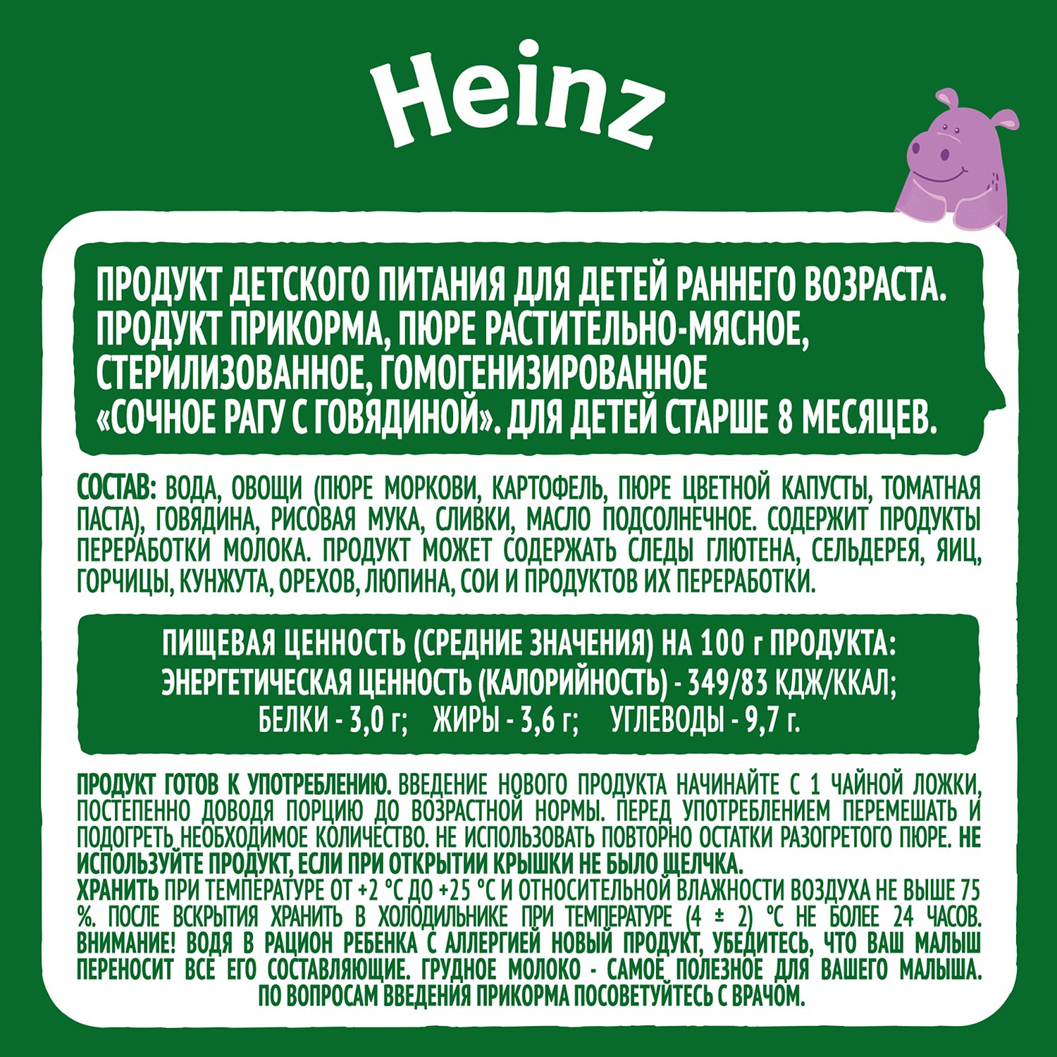 Пюре Хайнц cочное рагу с говядиной 115г с 8месяцев 76019761