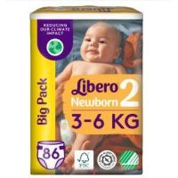 Підгузки Libero Newborn Розмір 2 (3-6 кг) 86 шт (7322541756677)