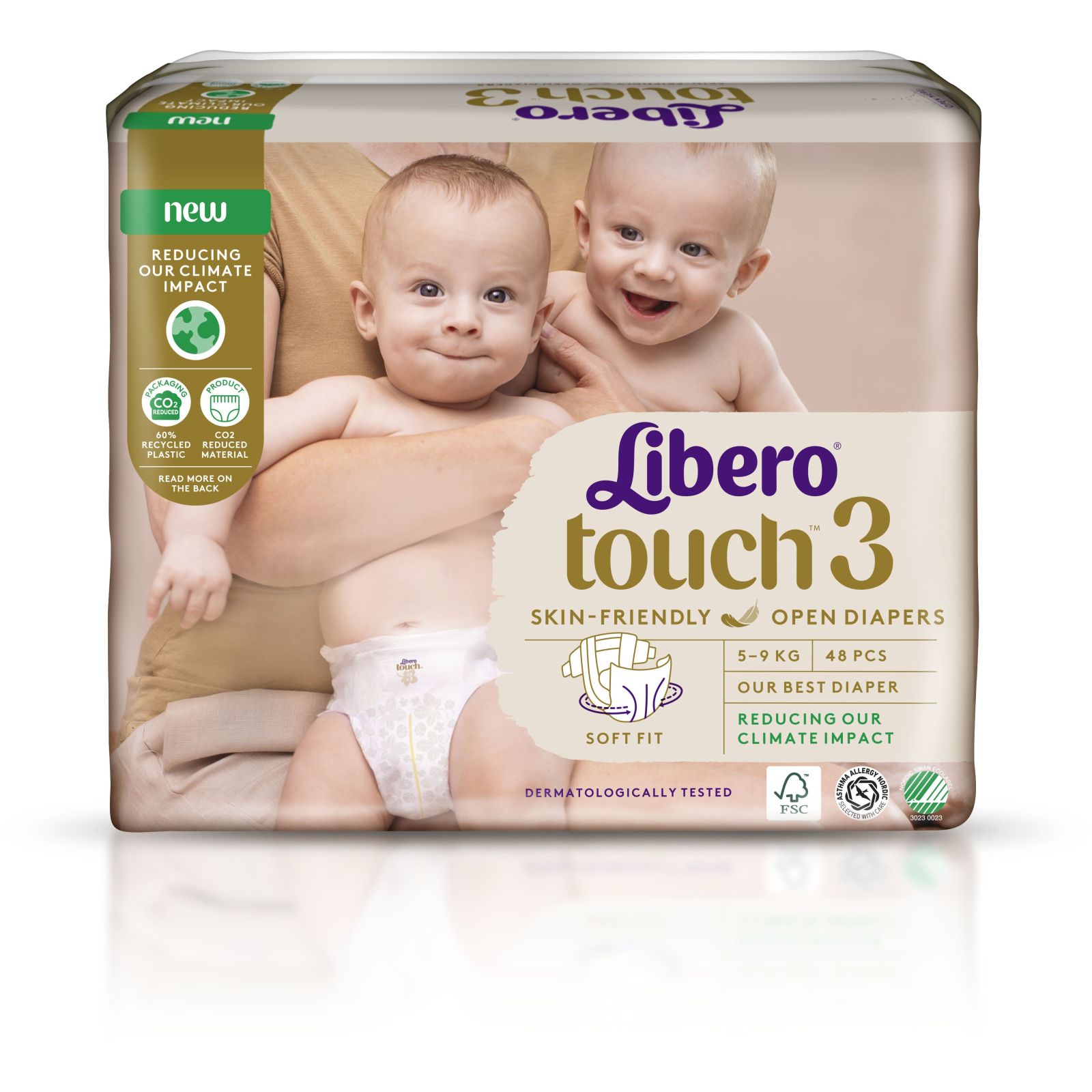 Libero Touch без лосьйонів пройшов дерматологічні тестування, сертифікований Nordic Swan Ecolabel і рекомендований Asthma Allergy Nordic. Крім того, він виготовлений із FSC-сертифікованої целюлози. Продовжуючи шлях зниження впливу Libero на клімат, понад 60% упаковки підгузків виготовлено із переробленого пластику. Ми додаємо поновлювані матеріали для виробництва підгузків, що допомагає зменшити вуглецевий слід Libero .