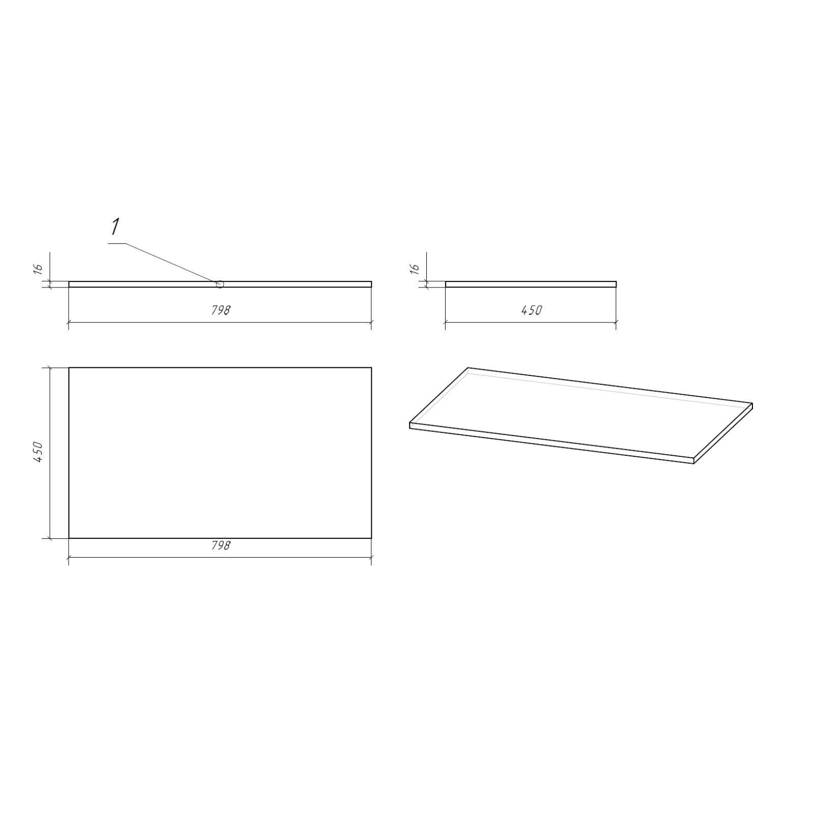 Столешница для тумбы Cersanit MODUO 80, подвесная, дуб