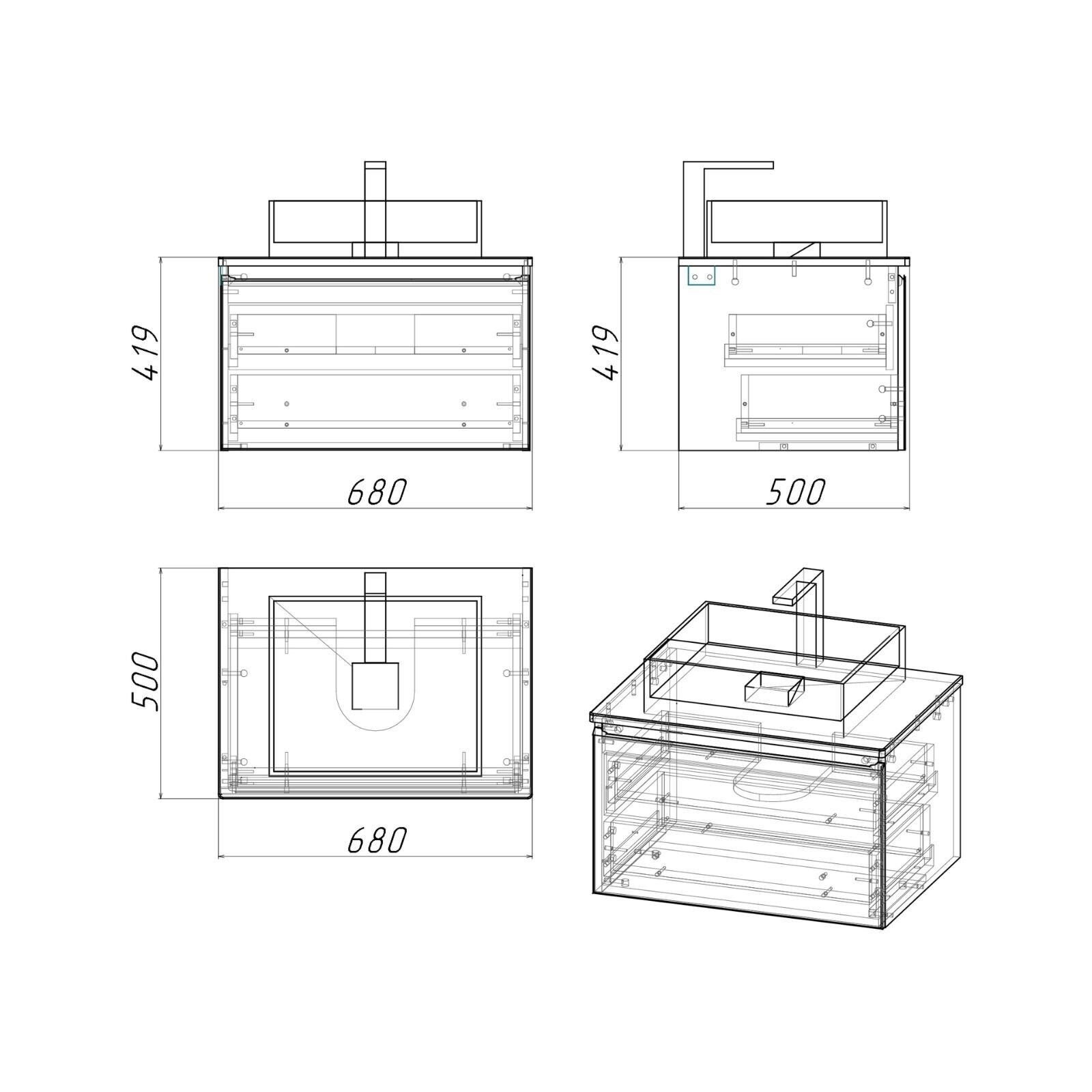 Тумба "Senator 70" подвесная под Раковина "Joy 46" с двумя ящиками В2
