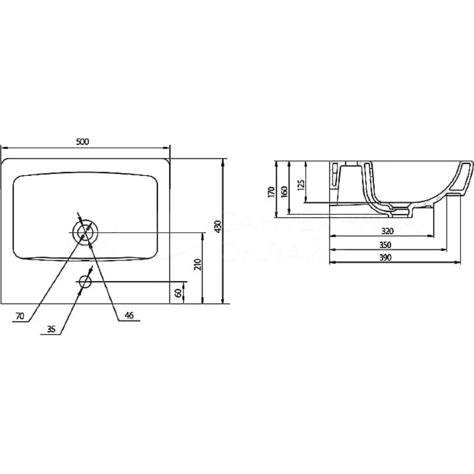 Подставка с раковиной "Тайлер 50" 43,5 х 50 х 20 см