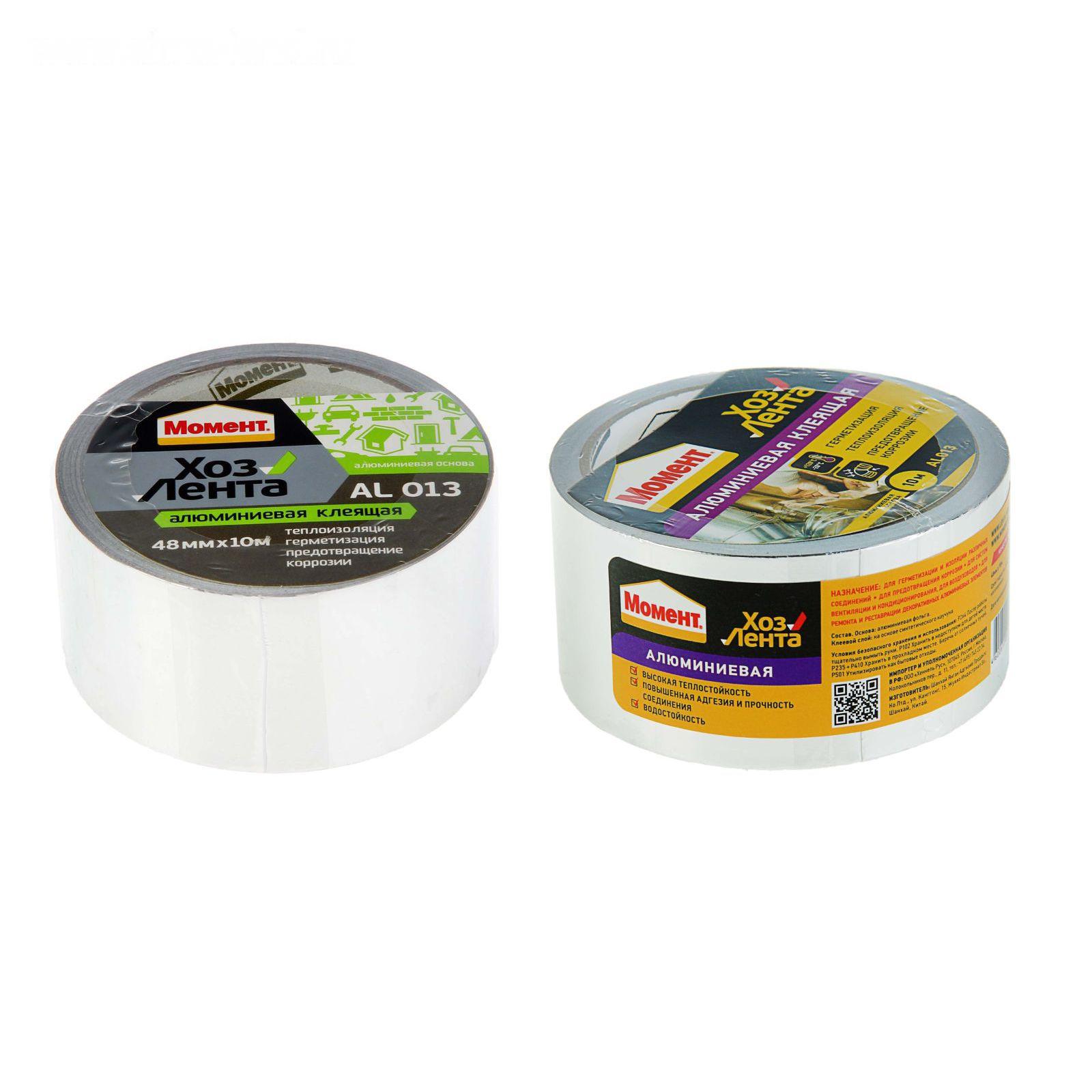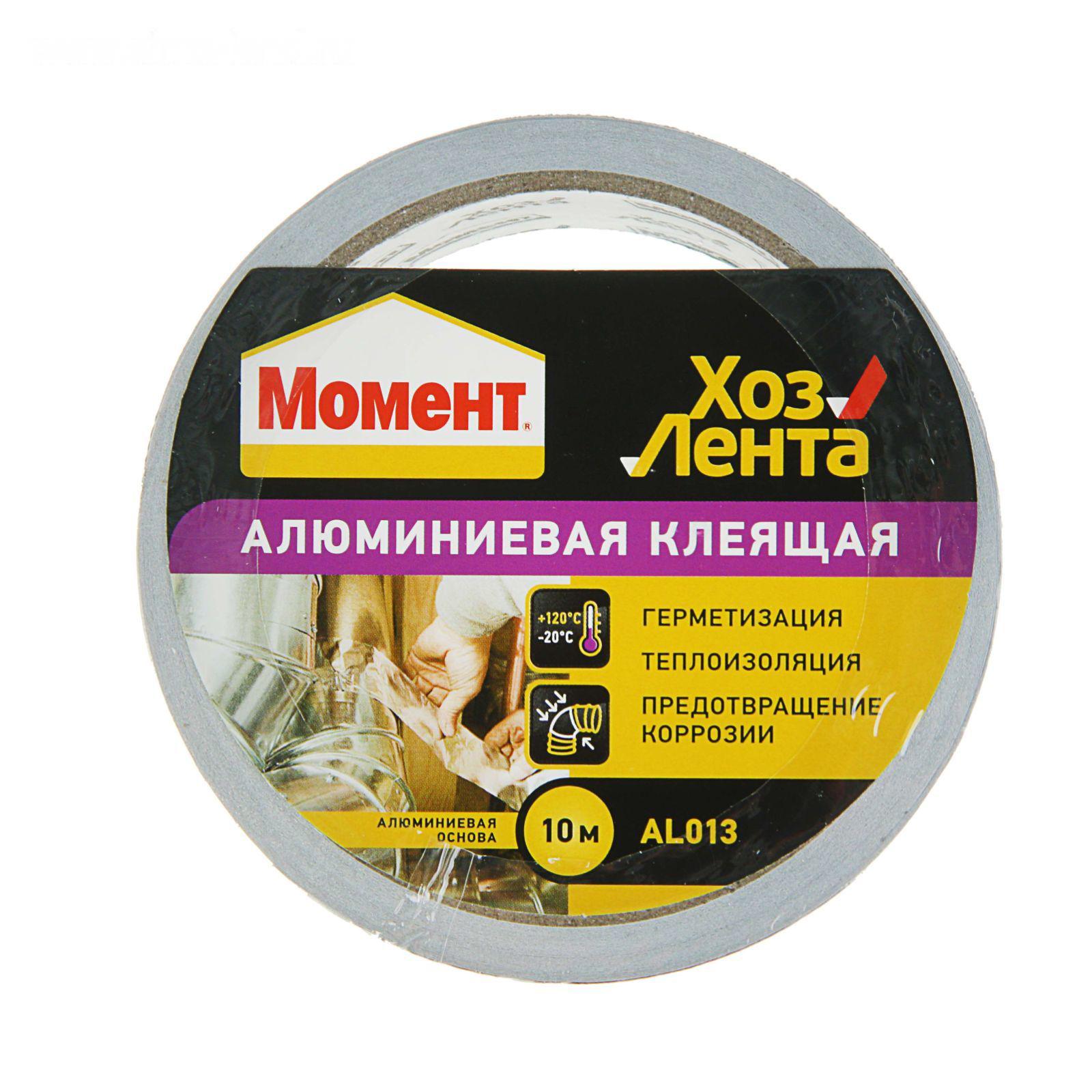 Хозлента "Момент", 48 мм х 10 м, клеящая, алюминиевая, цвет серебро