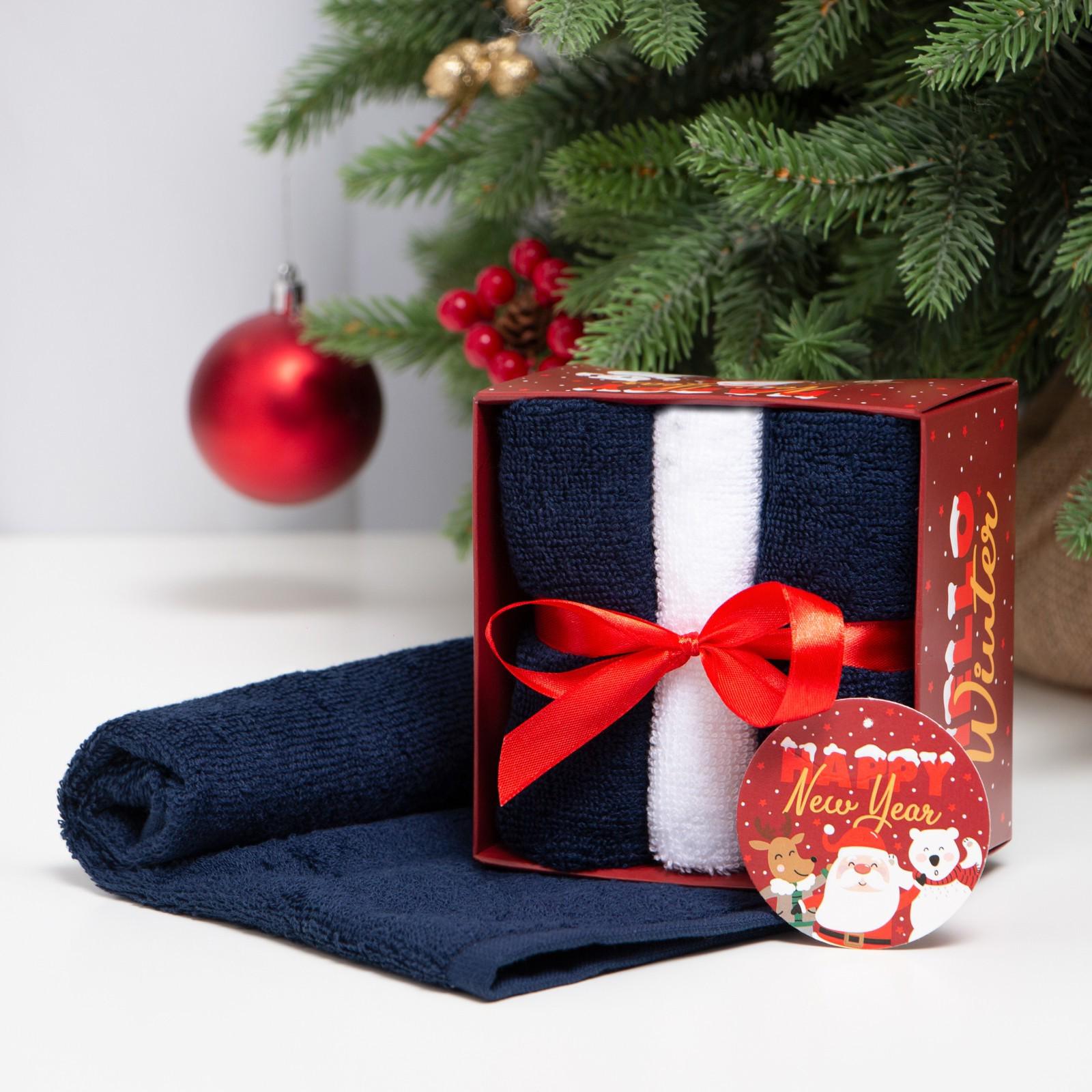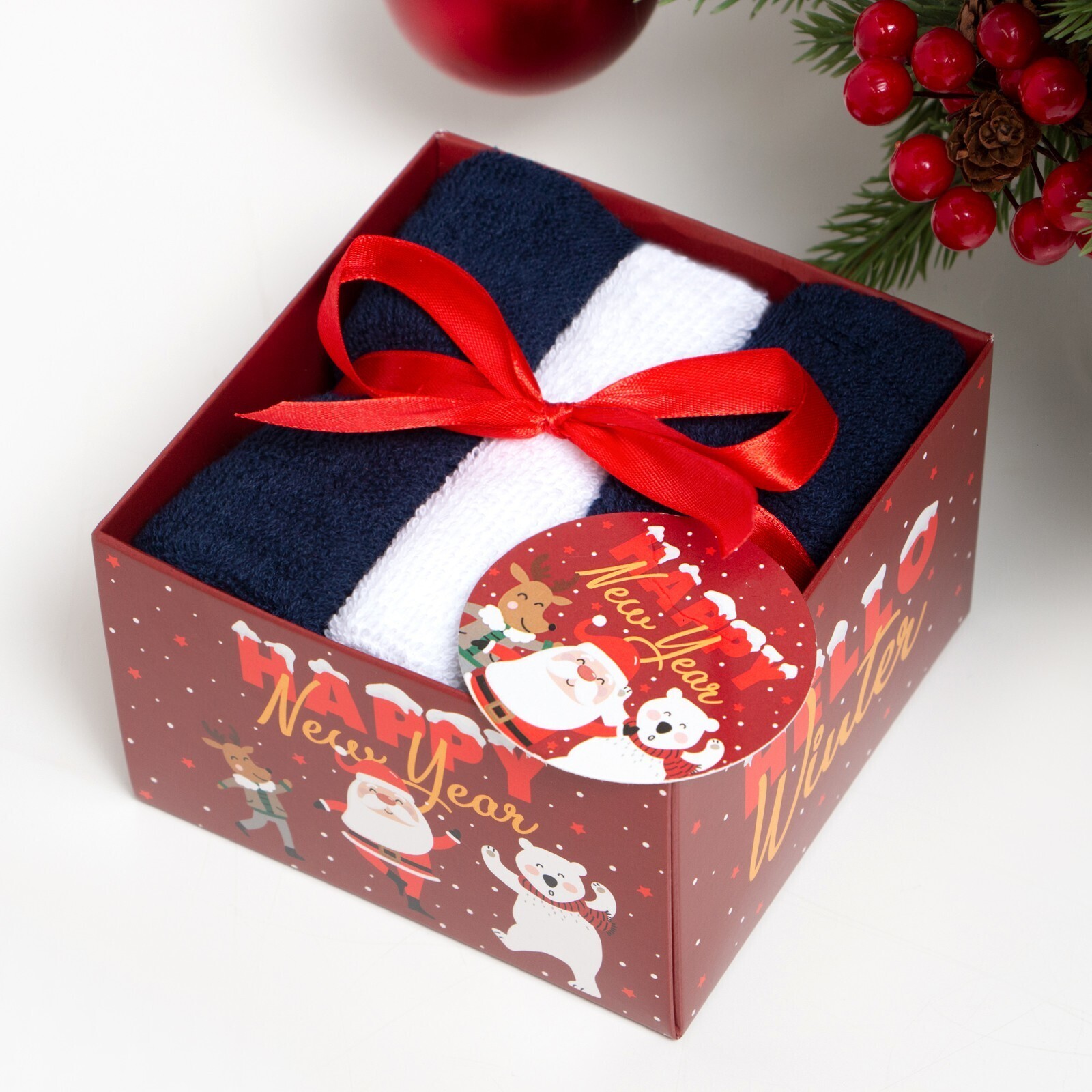 Набор махровых полотенец Этель Hello winter 30х30 см - 3 шт, хлопок 340гр/м2