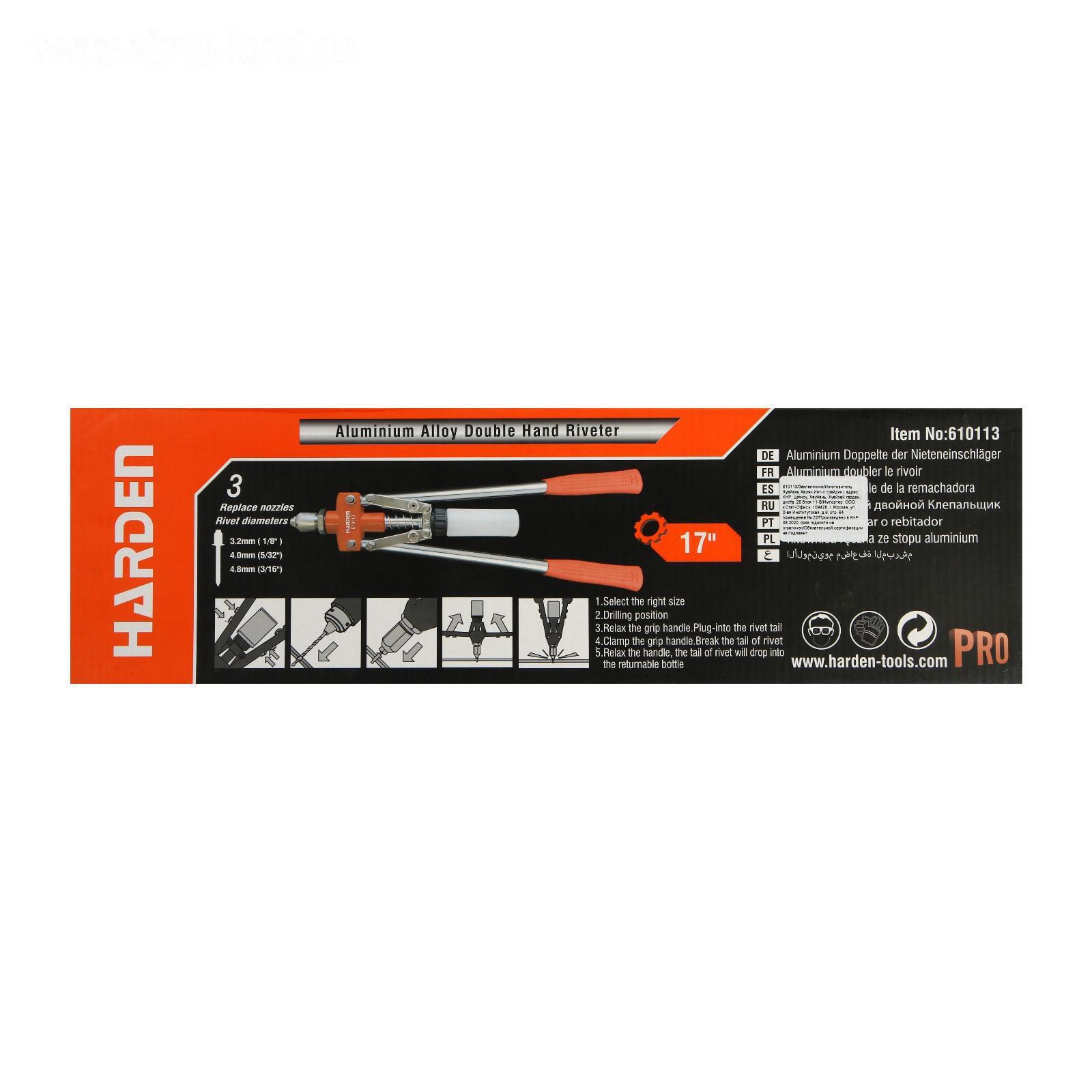 Заклепочник HARDEN 610113, двуручный, для заклепок 3,2-4,0-4,8 мм