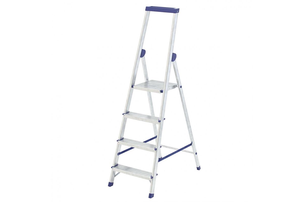 Алюминиевая стремянка с органайзером используется в доме, гараже и саду.