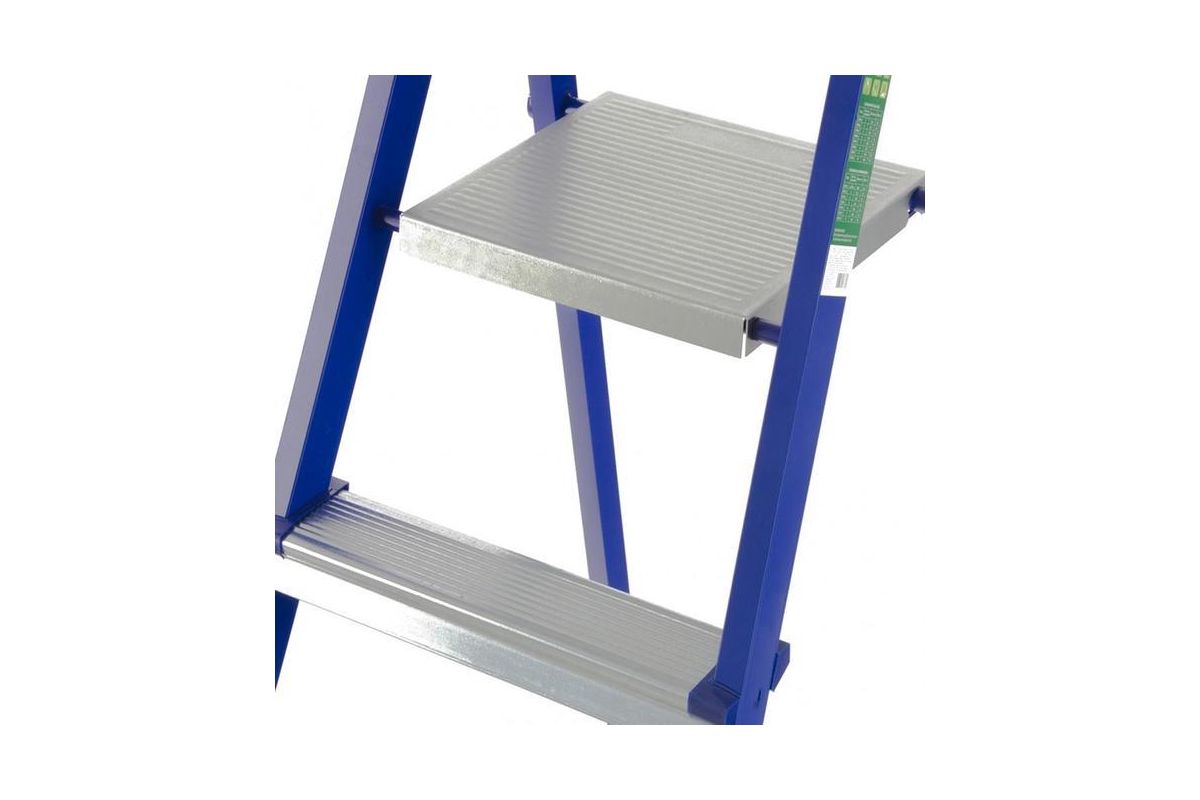 Стальная стремянка за счет прочной и надежной конструкции может применяться как в быту, так и в профессиональной деятельности (например, при проведении строительных работ).