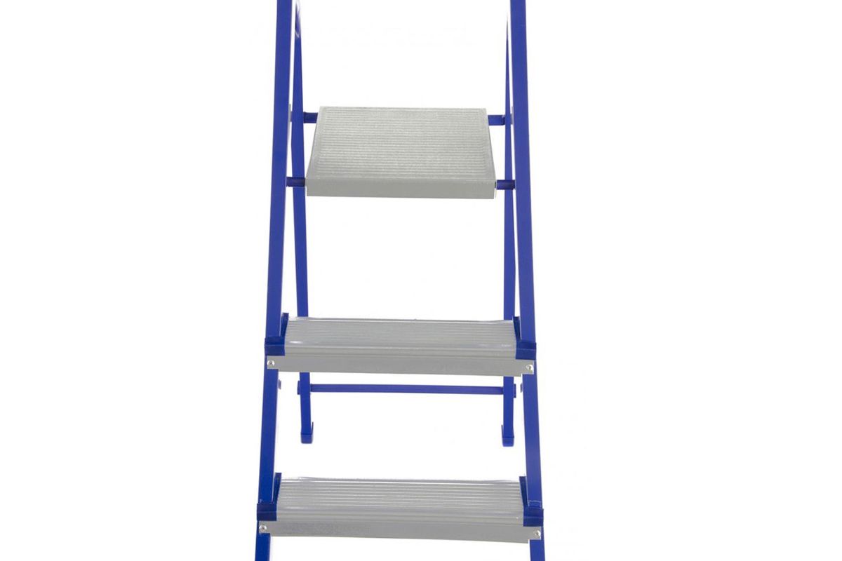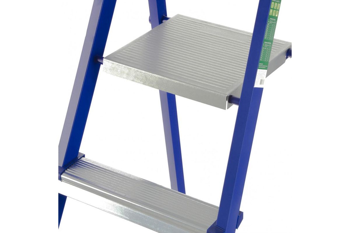 Стальная стремянка за счет прочной и надежной конструкции может применяться как в быту, так и в профессиональной деятельности (например, при проведении строительных работ).