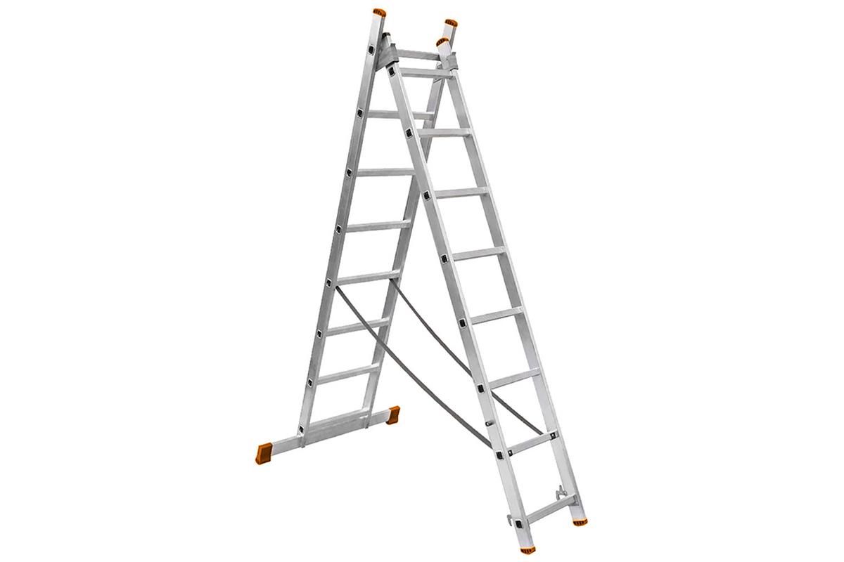 Алюминиевая двухсекционная лестница Вихрь ЛА 2х7 подходит для строительства и отделки.