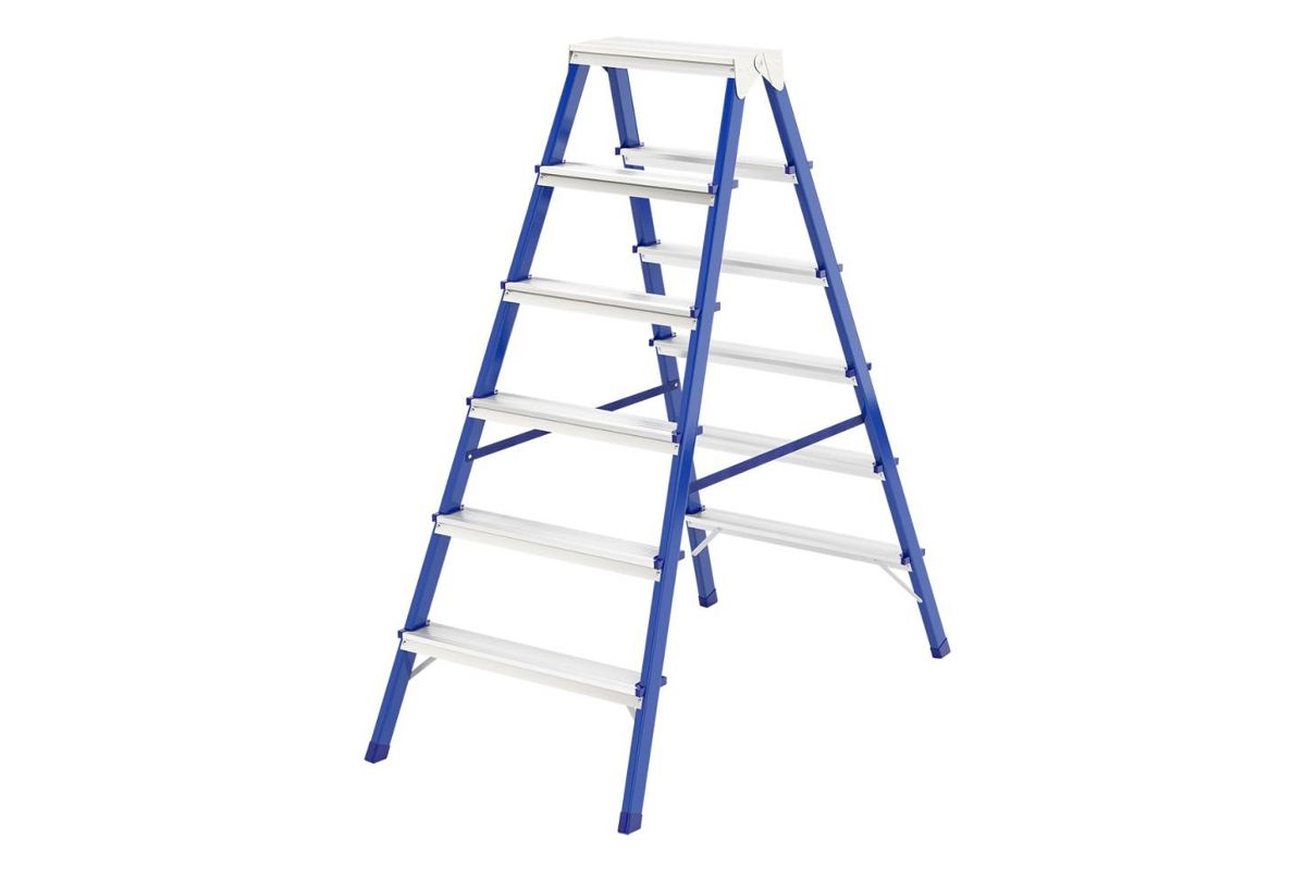 Стальна двусторонняя стремянка широко используется в частных домах и квартирах.