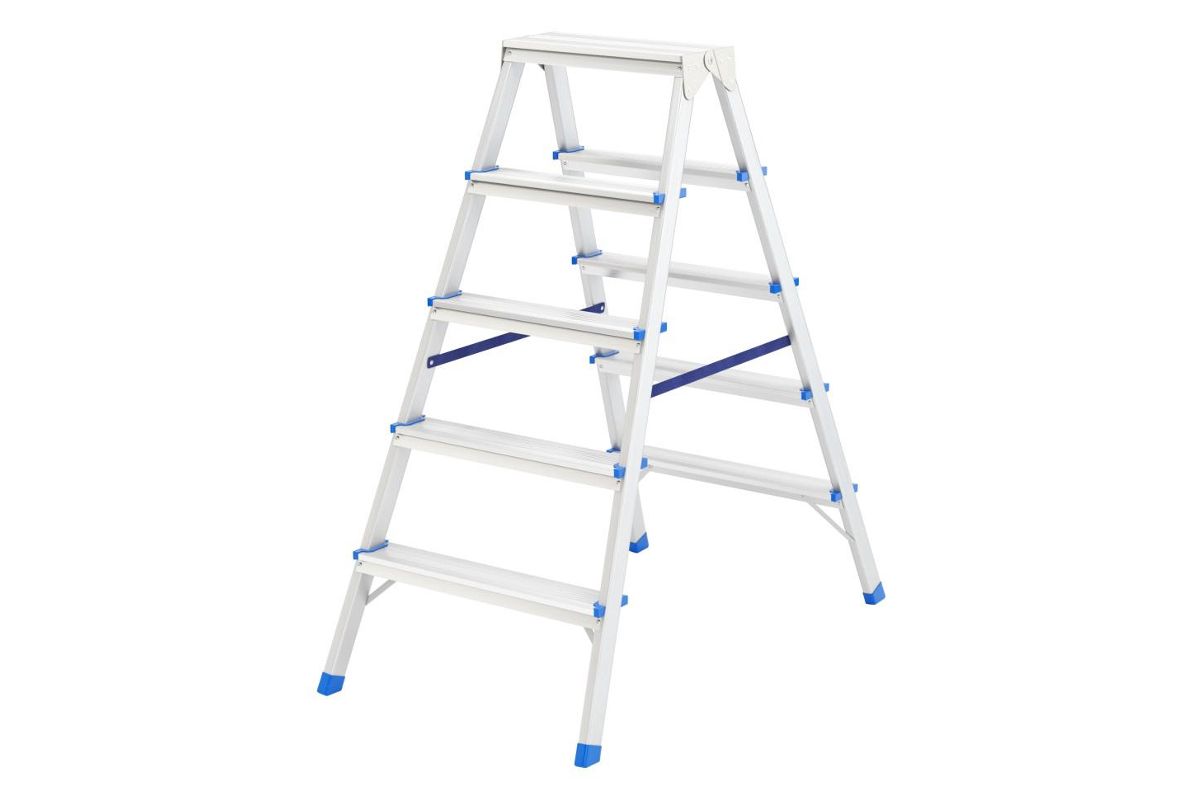 Алюминиевая двусторонняя стремянка широко используется в частных домах и квартирах.