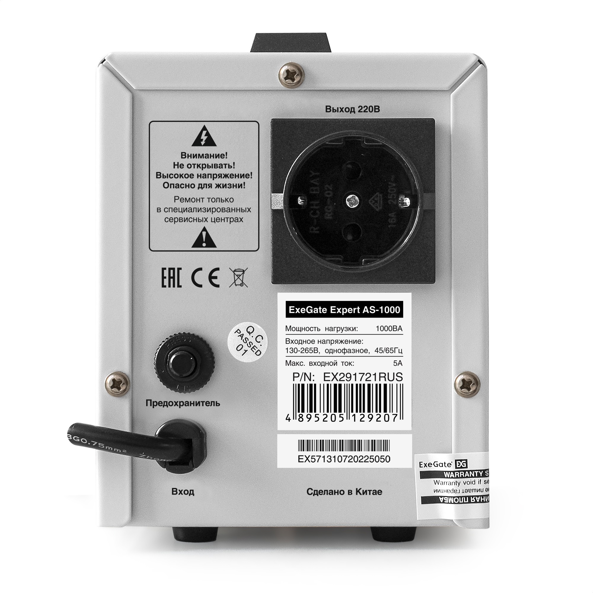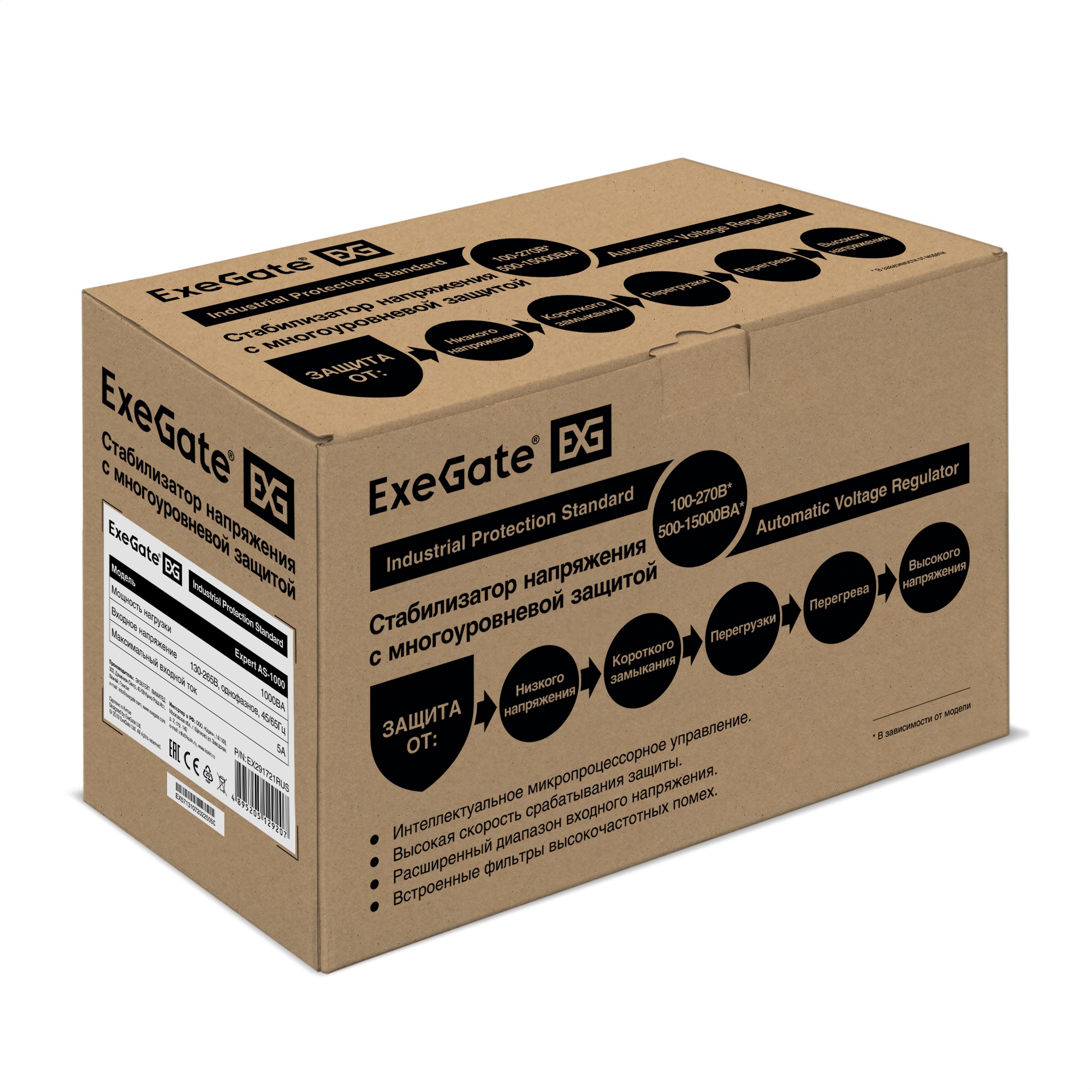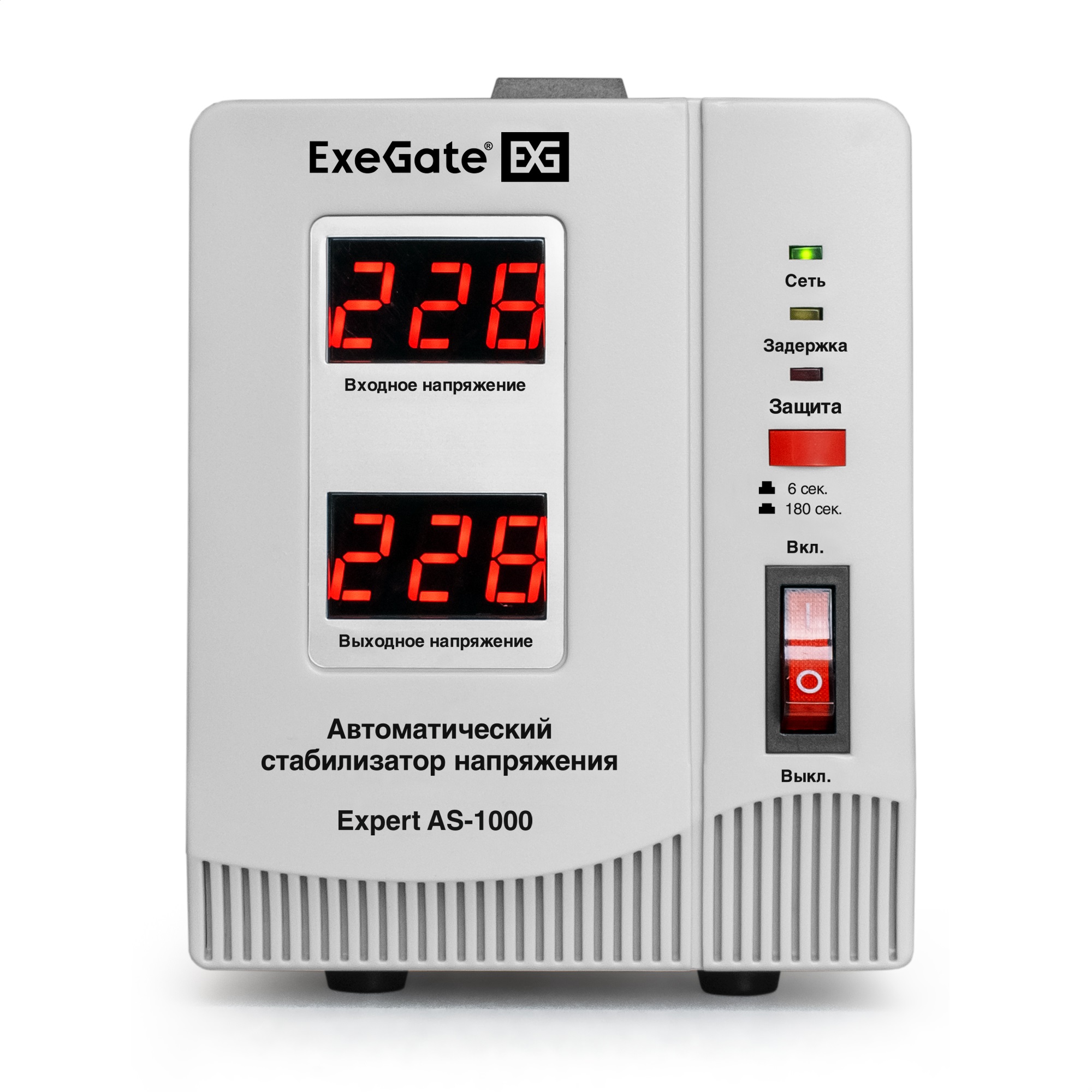 Стабилизатор напряжения ExeGate Expert AS-1000 (1000ВА, вход 140-260В, двойная цифр. индикация вход/вых. напряжения, выход 220В±8%, КПД 98%, (деф. корпуса)