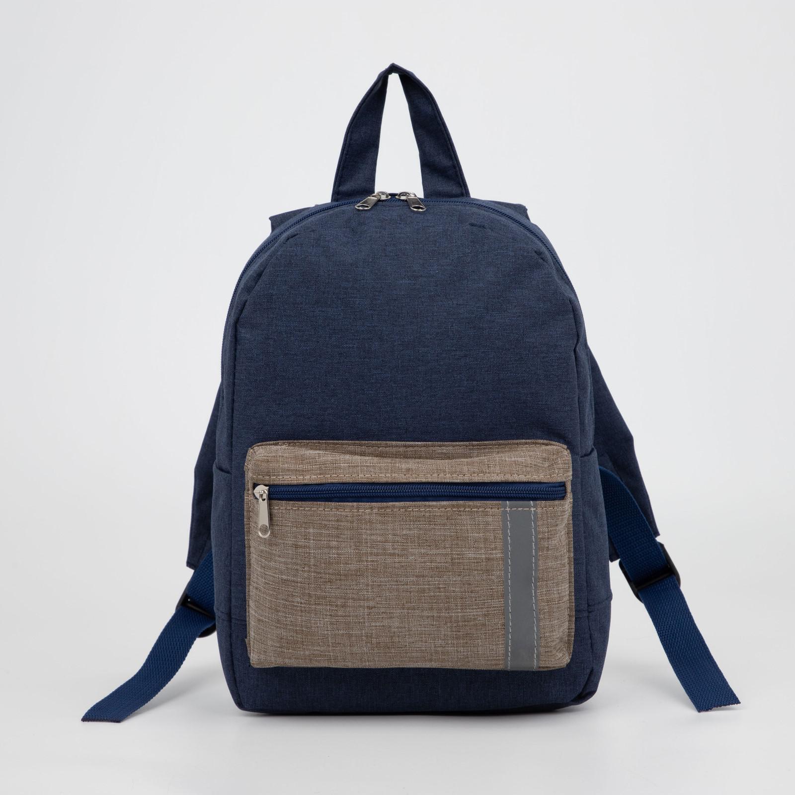 Рюкзак детский на молнии, наружный карман, светоотражающая полоса, цвет синий