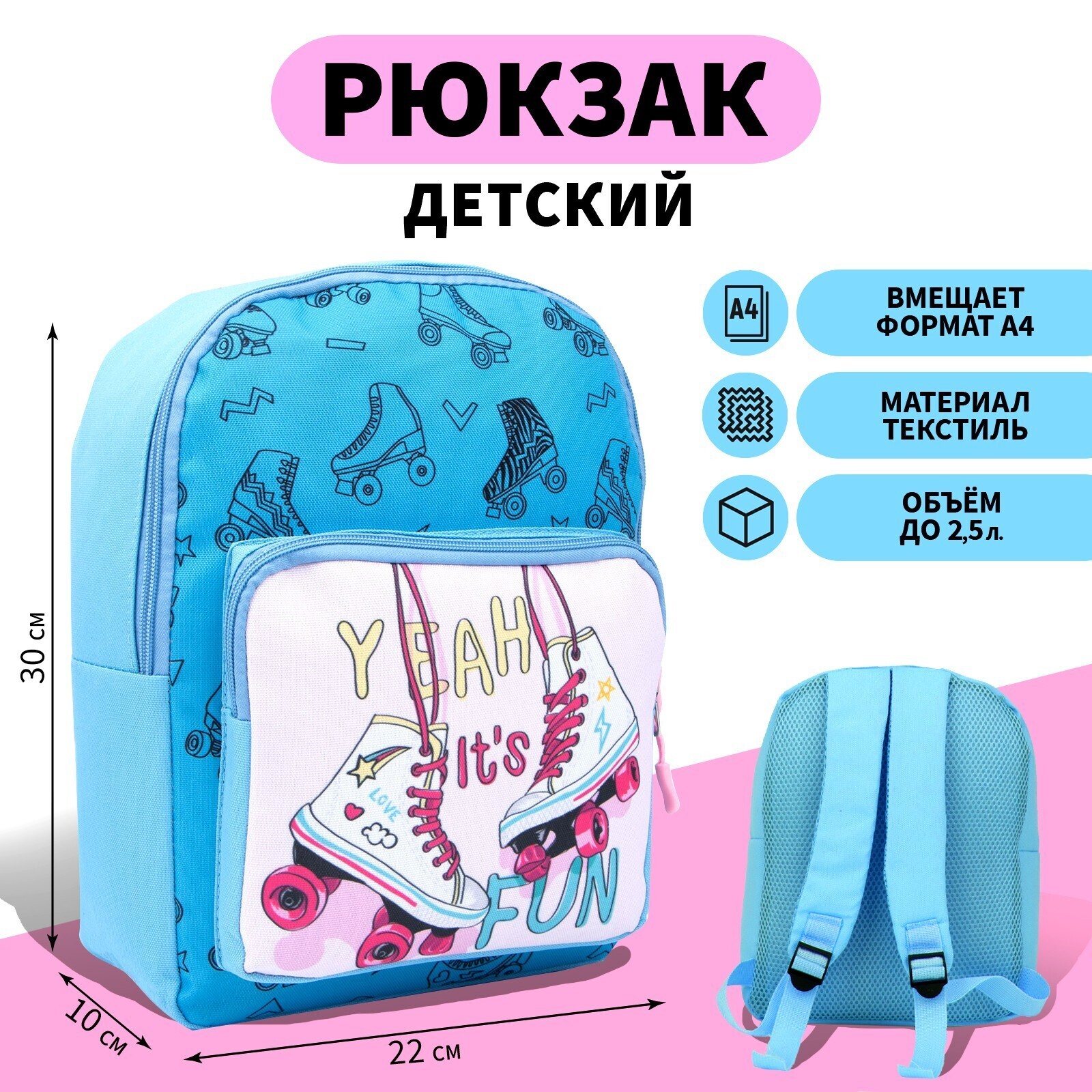 Рюкзак детский с карманом «Ролики», 30 х 22 х 10 см