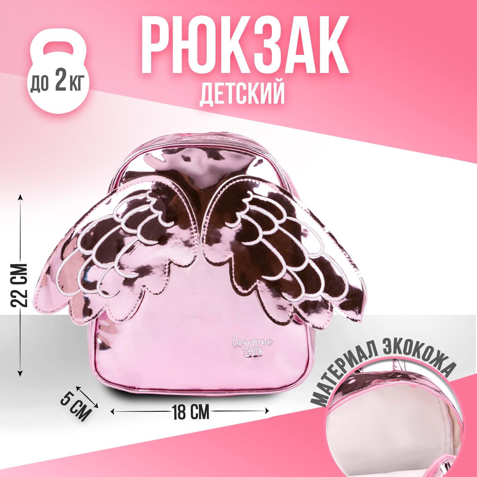 Рюкзак детский, с крыльями, отдел на молнии, цвет розовый