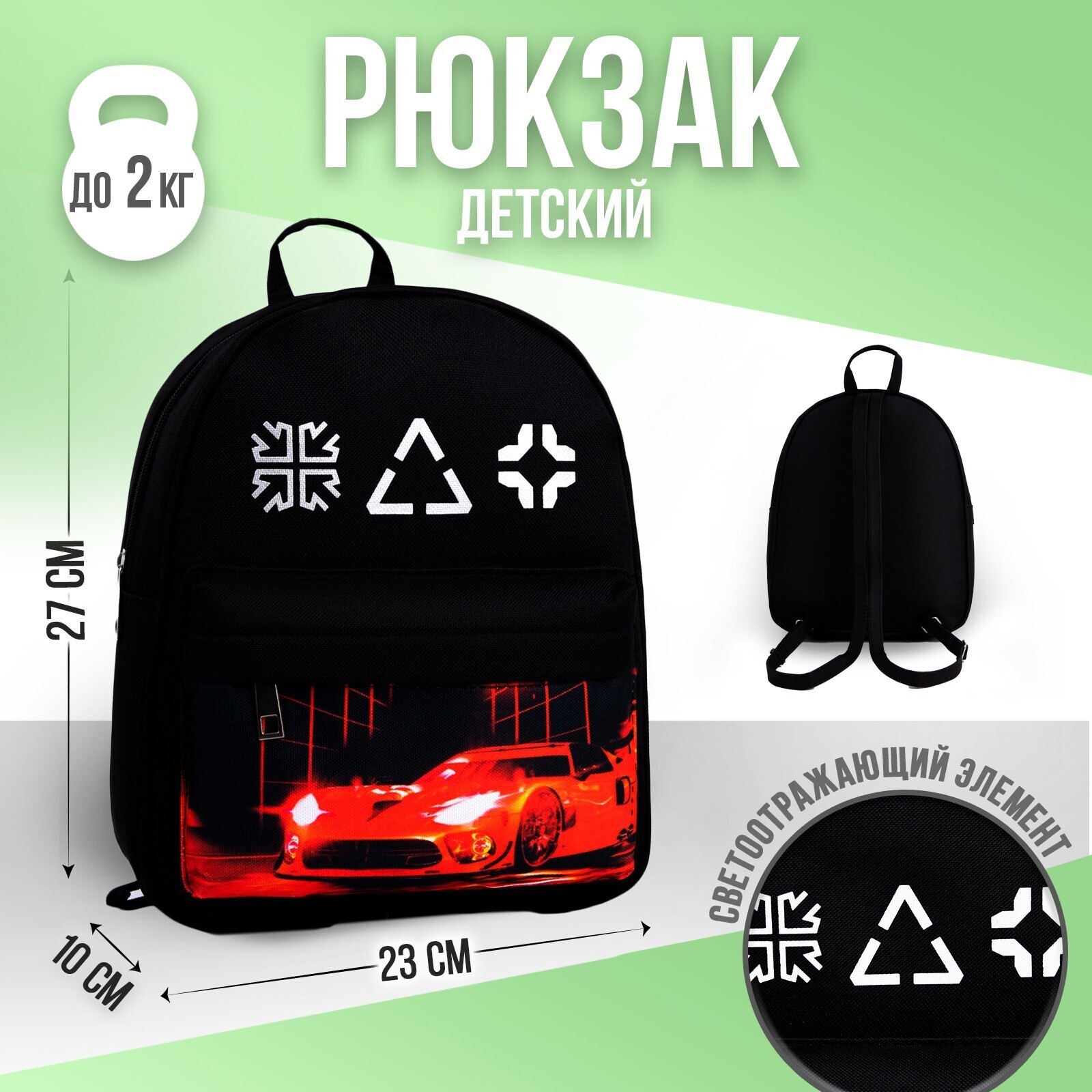 Рюкзак текстильный c карманом «Машинка», светоотр. элементы, 27 х 23 х 10 см