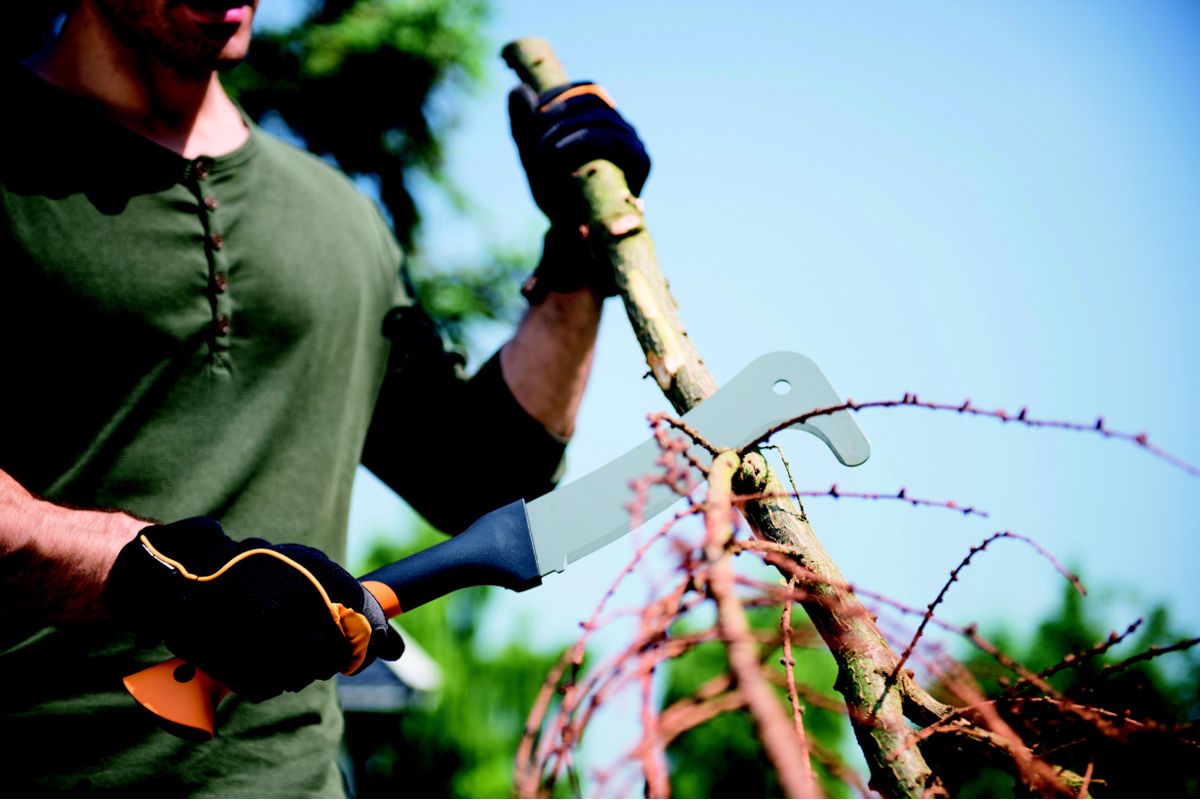 FISKARS XA3 — малый секач для сучьев используется во время садовых работ. Подходит для уборки участка от поросли, снятия коры с бревен, подрубки мелких веток. Изогнутое лезвие выполнено из стали с тефлоновым покрытием и оснащено рукояткой с амортизирующим покрытием. Инструмент обладает небольшим весом — 450 гр. Длина — 505 мм. Ширина — 120 мм.