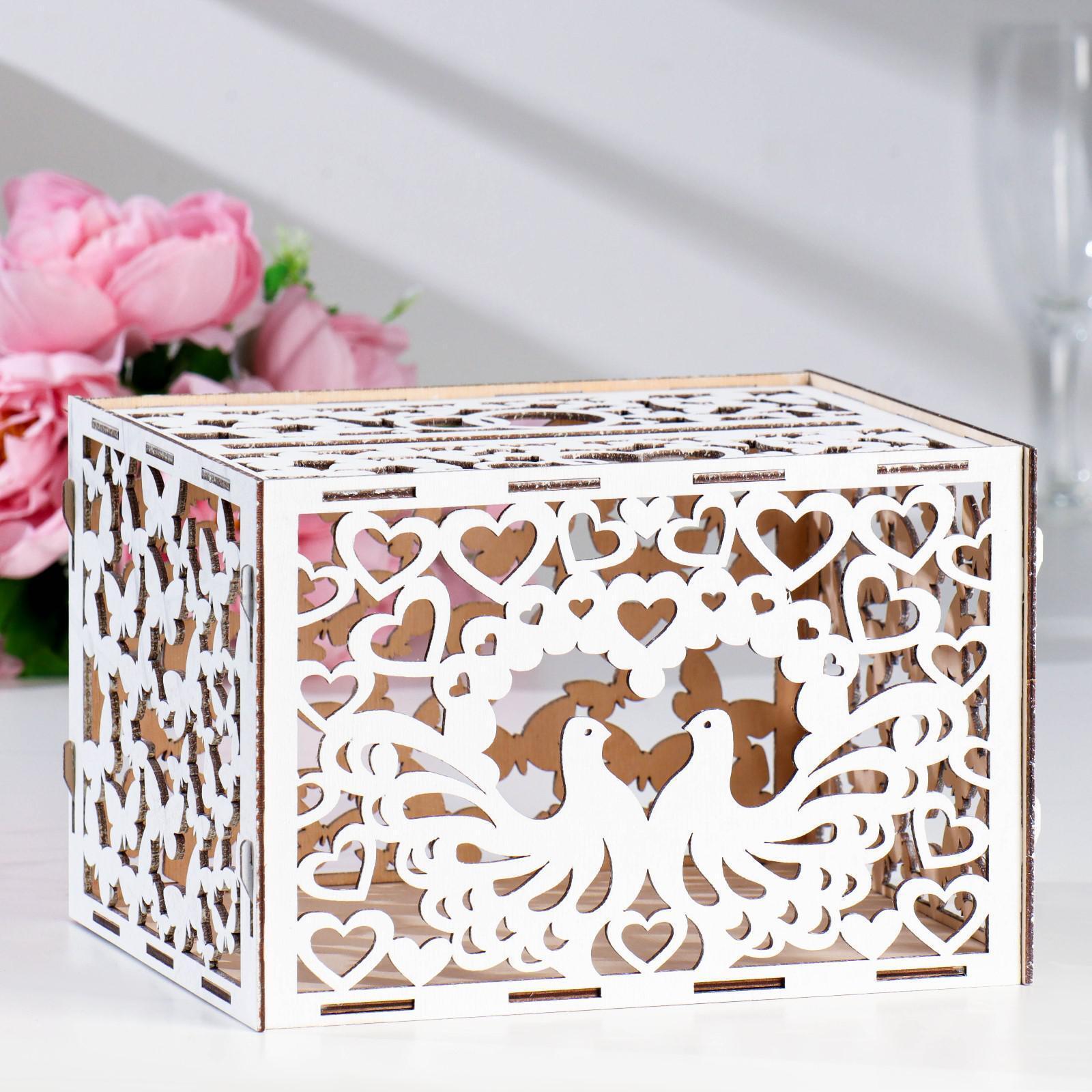 Свадебный банк "Голуби", белый, сборный, 24х19,5х16 см